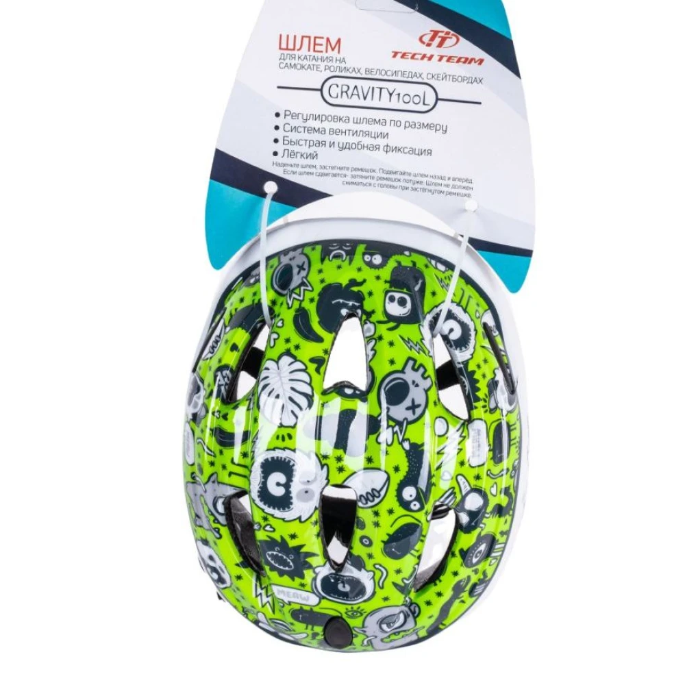 Шлем Tech Team Gravity 100 зеленый -  лидер продаж сезона 2022. Модель выгляди круто и заметно на фоне других участников движения.