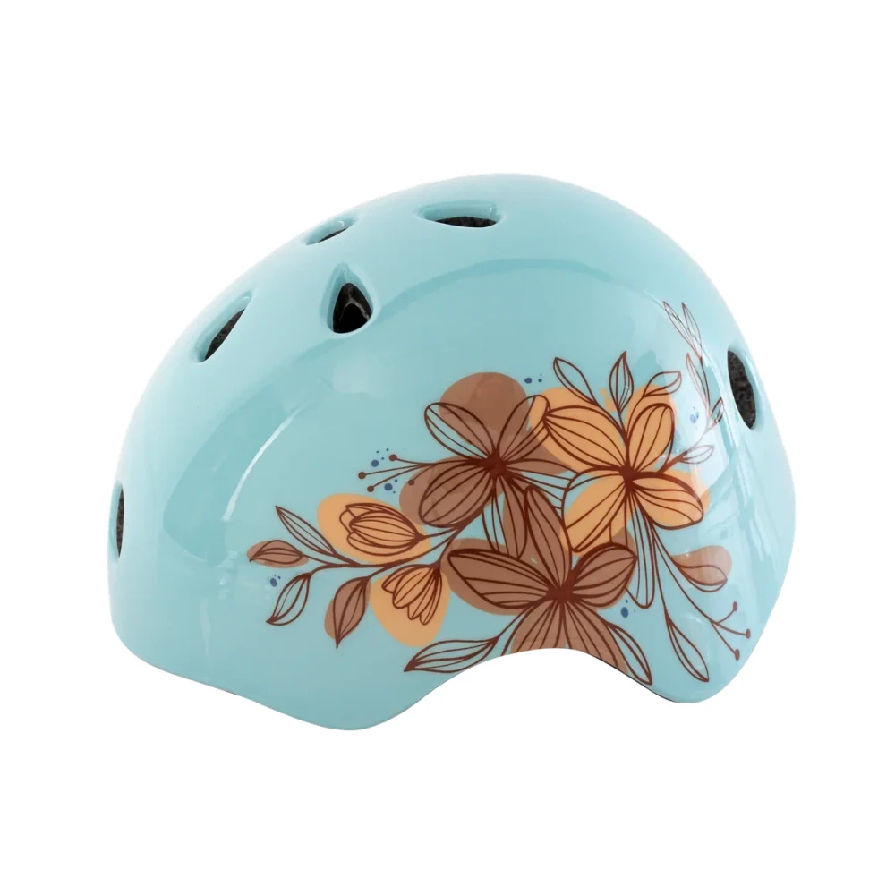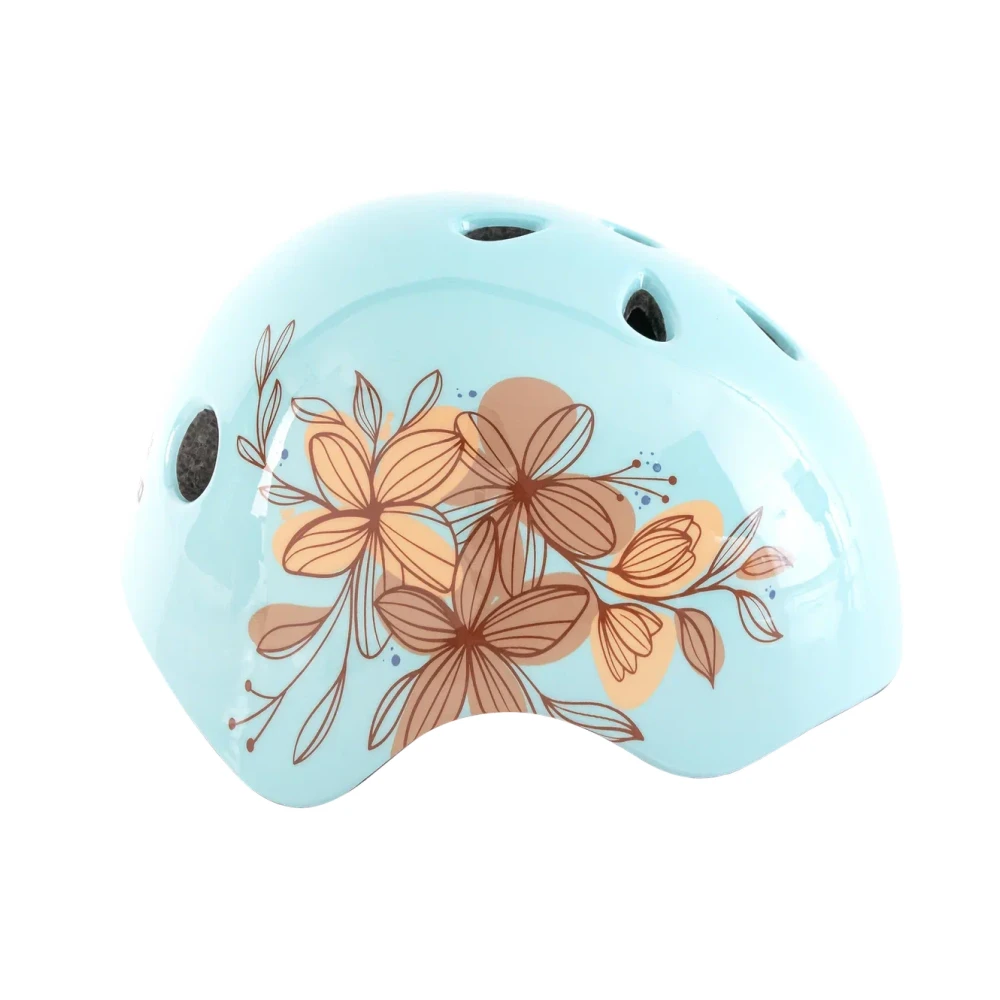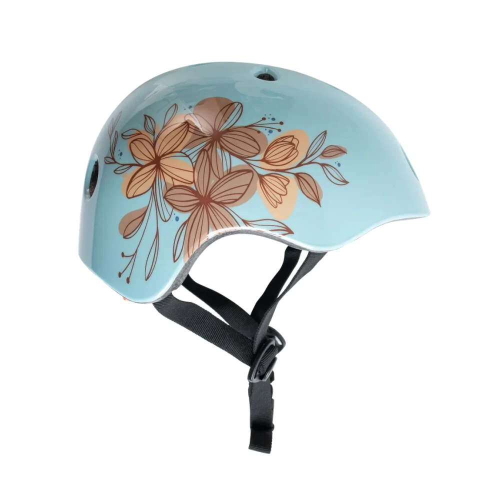 Его голубой цвет и яркий рисунок с красивыми цветами делают его настоящим произведением искусства. К тому же, световой сигнал с тремя режимами на задней части шлема обеспечивает дополнительную видимость на дороге.