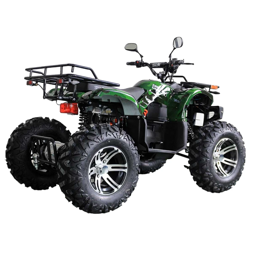 Электроквадроцикл достигает скорости до 50 км/ч. Батарея на 72V 3000W может проехать до 60 км на одном заряде. R12 alum дифференциал улучшает проходимость и стабильность на всех типах поверхностей. А зеленый цвет добавляет красоты и оригинальности.