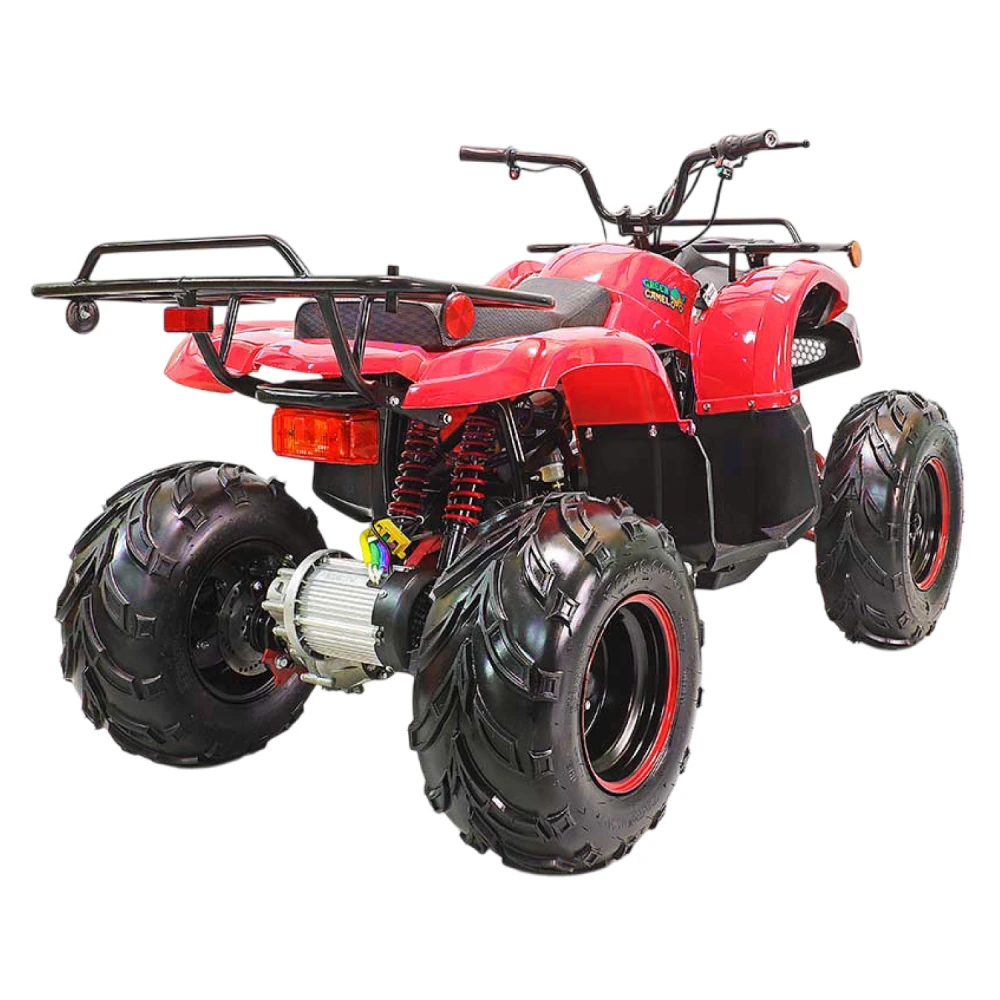 У GreenCamel Caxapa A1520 два вида батарей, можно приобрести квадроцикл с штатной батарей 20 Аh SLA GEL, у которой запас хода 40 км. Ресурс 20 тыс. Км, время зарядки 8 часов. В комплектации есть более мощная батарея 42 Аh Boston, запас хода 80 км. Ресурс батареи 100 тыс. Км, время заряда 16 ч. У квадроцикла отсутствует спидометр, и шнур безопасности на руле.