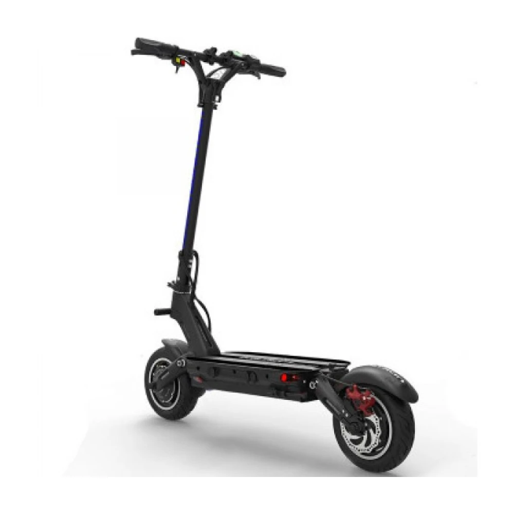 Оснащение самоката двумя мощными моторами по 800 Вт, позволяет ему быть быстрым и манёвренным, набирая до 60-65 км/ч. Для экономии заряда при спокойной езде можно отключить один мотор. В городском движении вы будите чувствовать себя уверенно, благодаря тормозу расположенному на пережнем и заднем колесах.