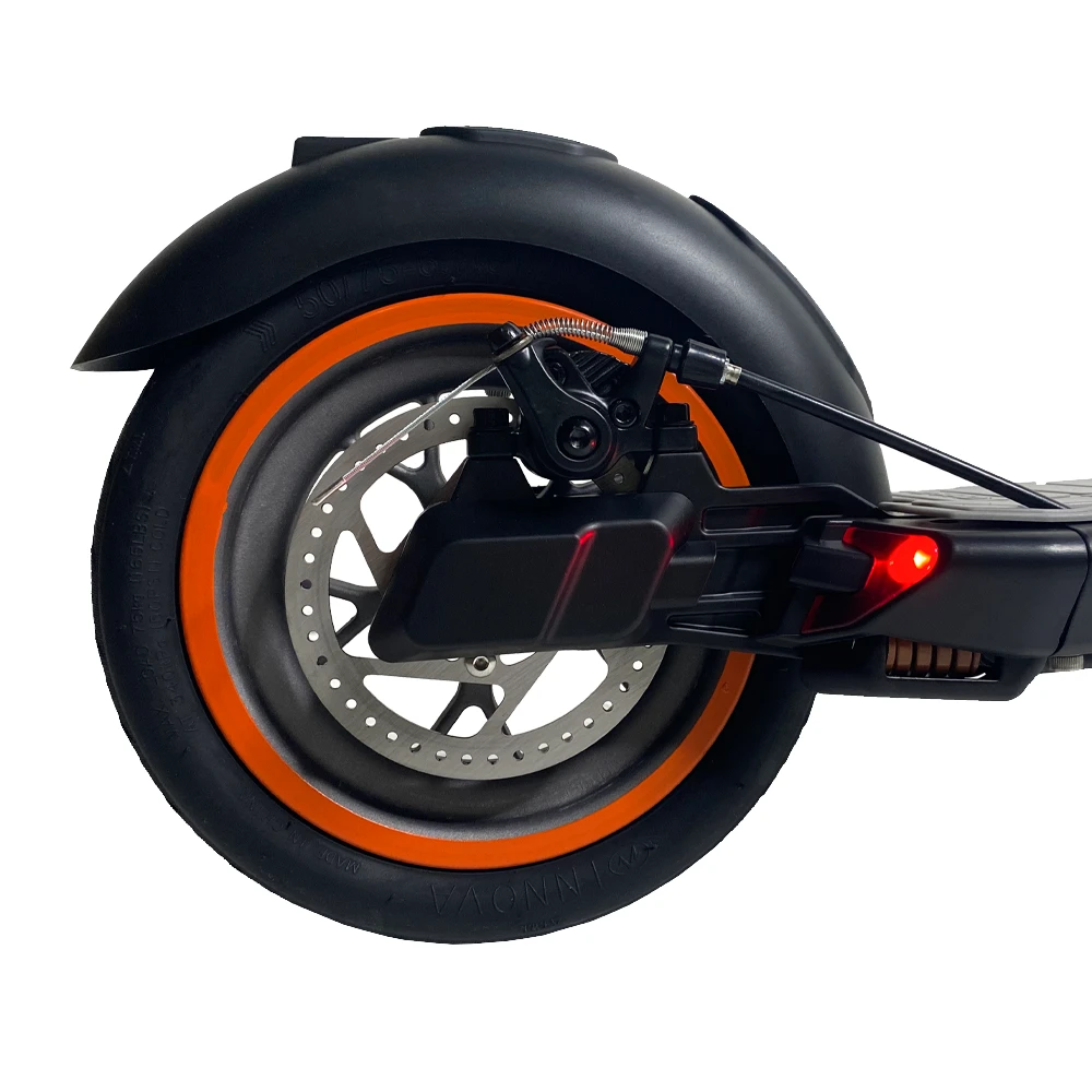IP54 влагозащита позволяет кататься даже в дождь, а яркая LED‑фара и стоп‑сигнал обеспечивают безопасность в тёмное время суток.