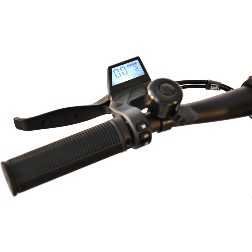 Электросамокат оснащен необходимыми комплектующими, обеспечивающими безопасность передвижения. Имеет дисплей для контроля заряда АКБ, скорости и других параметров. Удобная прорезиненная дека широкая, позволяет установить две ноги одновременно, не допускает соскальзывание ног. Аналогичной можно сказать про курок газа и грипсы.