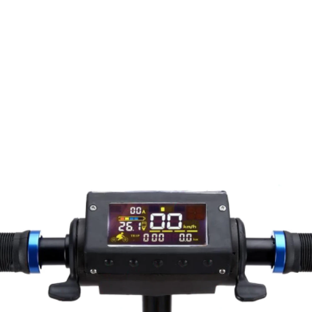 Аккумулятор емкостью 6 А*ч, дальность хода на одном заряде 25 км. Пополнить емкость можно просто, включить в сеть 220 вольт на 4 часа. Есть информационный дисплей, с помощью него можно контролировать скорость, заряд батареи и другое.