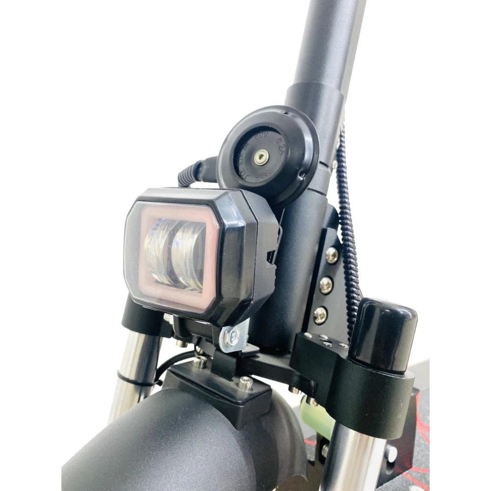 Самокат YOKAMURA RX2 имеет аккумулятор емкостью 24 А*ч, развивает максимальную скорость 60 км/ч. При спокойном передвижении можно отключить один двигатель, и значительно сэкономить заряд аккумулятора. На рулевой стойке установлен бортовой компьютер, который позволяет контролировать и регулировать основные показатели. Кроме передней фары и стоп-сигнала, по боковым линиям деки установлена диодная подсветка. Внешний вид агрегата достаточно эффектный.