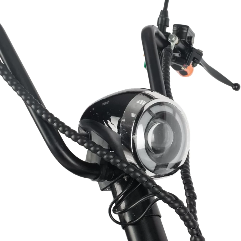 Электроскутер CityCoco Kugoo С3 PRO представляет собой современное транспортное средство, которое предназначено для поездок по городу, а также в условиях бездорожья. Благодаря широким 18-дюймовым колесам и системе амортизации, данная модель уверенно себя чувствует на пересеченной местности, компенсируя неровности дорожного покрытия. Мощный двигатель обеспечивает уверенный разгон до 50 км/час и позволяет легко преодолевать склоны и небольшие препятствия на пути. Электроскутером могут пользоваться сразу два человека. Удлиненное сиденье позволяет комфортно разместиться водителю и одному пассажиру. При этом прочная конструкция выдерживает нагрузку до 200 килограммов. Под сиденьем пассажира расположен закрытый багажный отсек, благодаря которому можно не беспокоиться о сохранности перевозимых вещей даже в неблагоприятных погодных условиях. Полного заряда батареи хватает на 50 километров пути. Если поездка затянется до позднего вечера - на помощь придет система освещения, которая включает в себя переднюю фару, габаритные огни и поворотники. Прочная металлическая подножка позволяет припарковать транспортное средство у любом удобном месте. Электроскутер Kugoo С3 PRO выполнен в классическом сдержанном стиле и придется по душе как мужчинам, так и женщинам.
