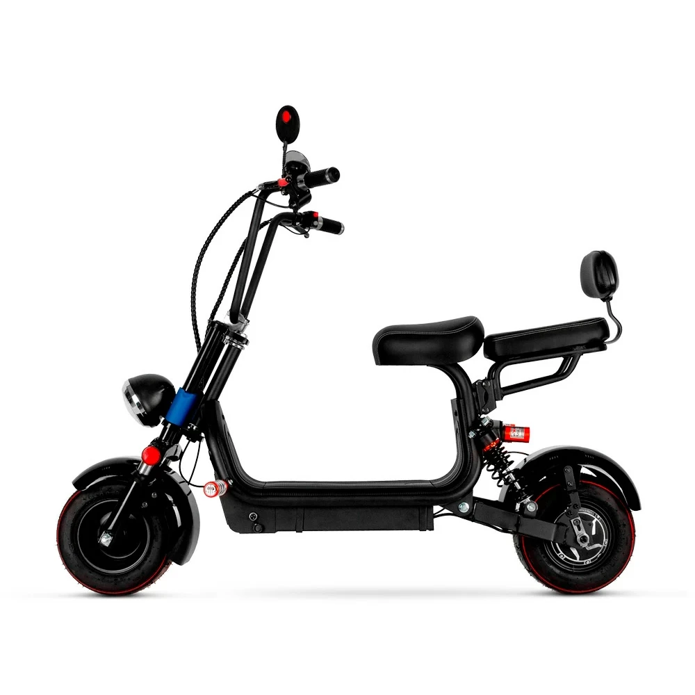 Электроскутер Mini Citycoco GT X2 оснащен колесами в 10", обеспечивающими плавное движение и амортизацию на любой дороге, так же максимальная нагрузка в 150 кг. и наличие двух сидений даёт возможность ездить на скутере вдвоём. Система гидравлического торможения обеспечит дополнительную безопасность при движении, а фонарь позволит совершать вечерние и ночные комфортные катания.