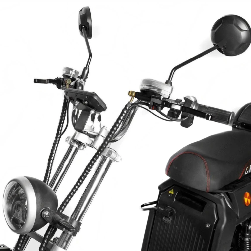 Байк оснащен фирменными запчастями, на передней части размещена широкая фара, обеспечивающая безопасность при езде в вечернее время. Информационный дисплей, установленный на рулевой части, позволяет контролировать скоростные характеристики и заряд АКБ.