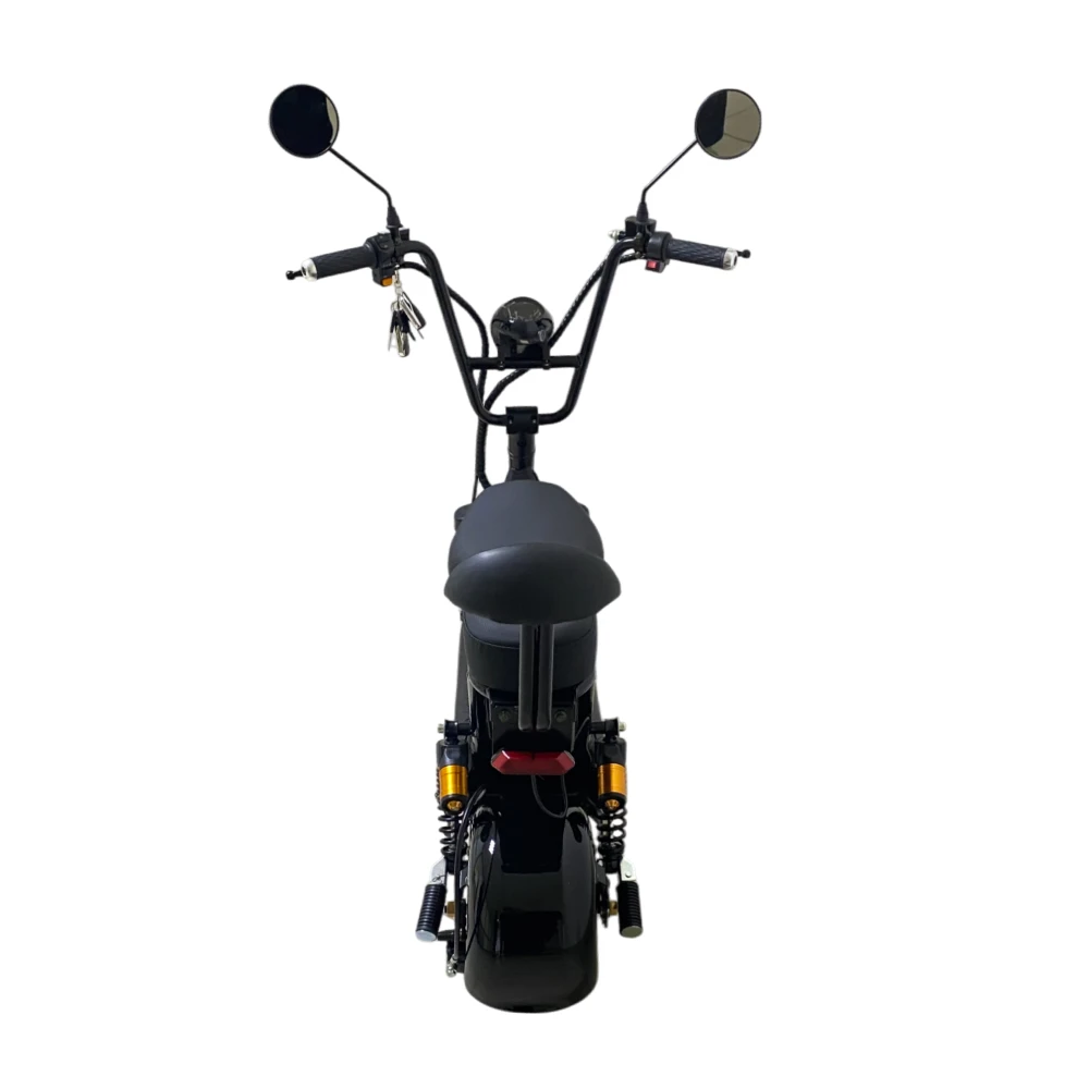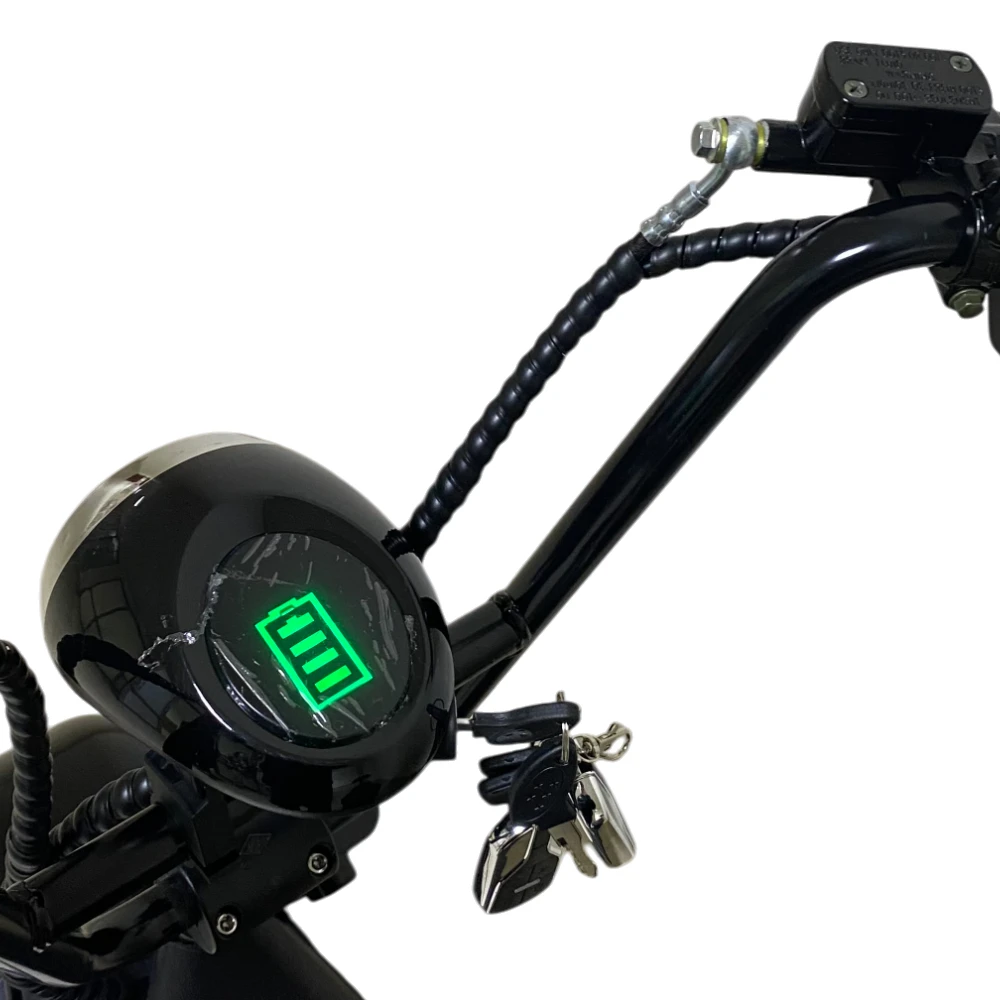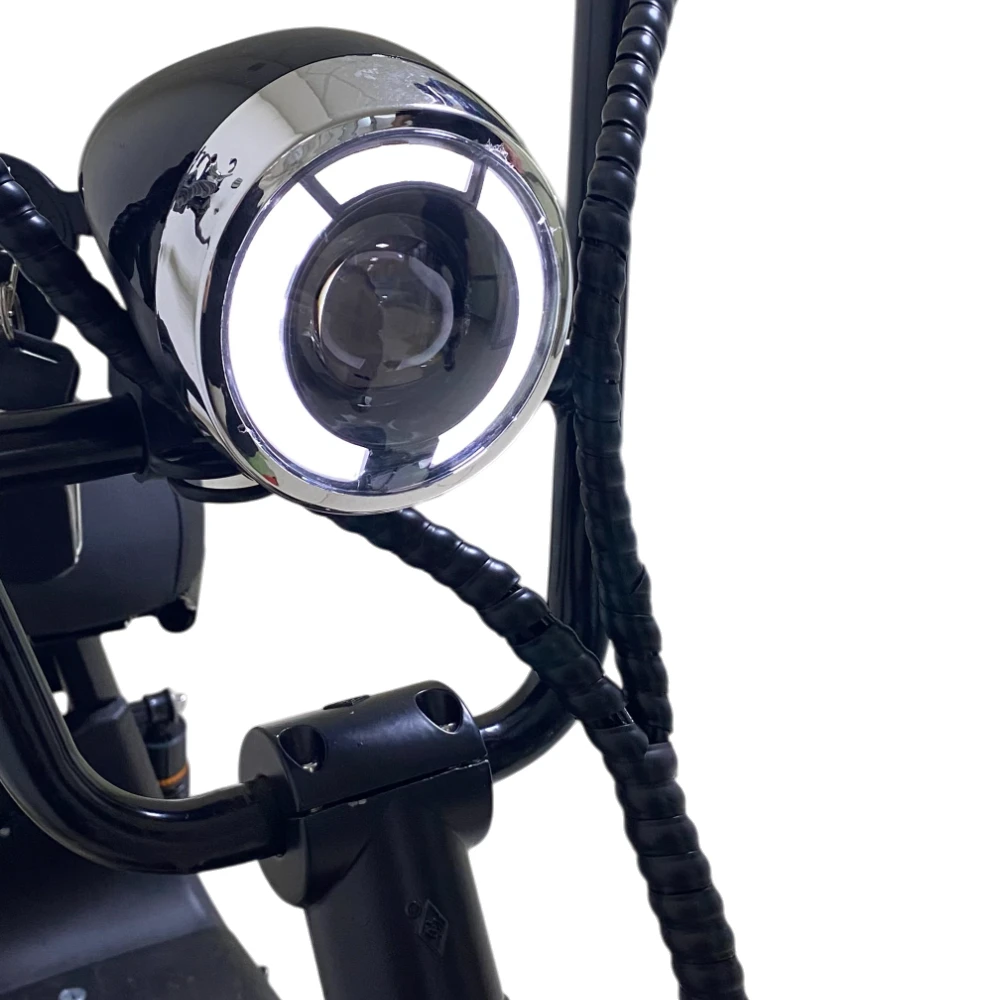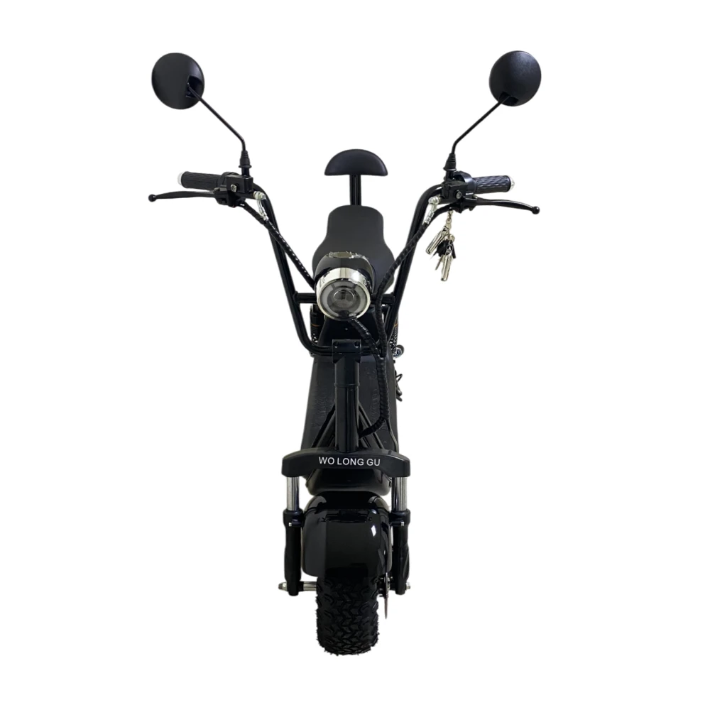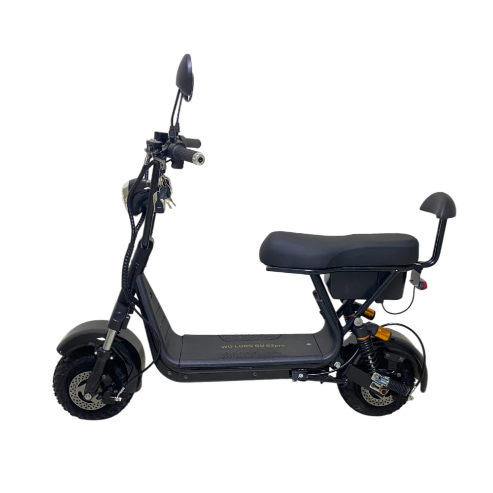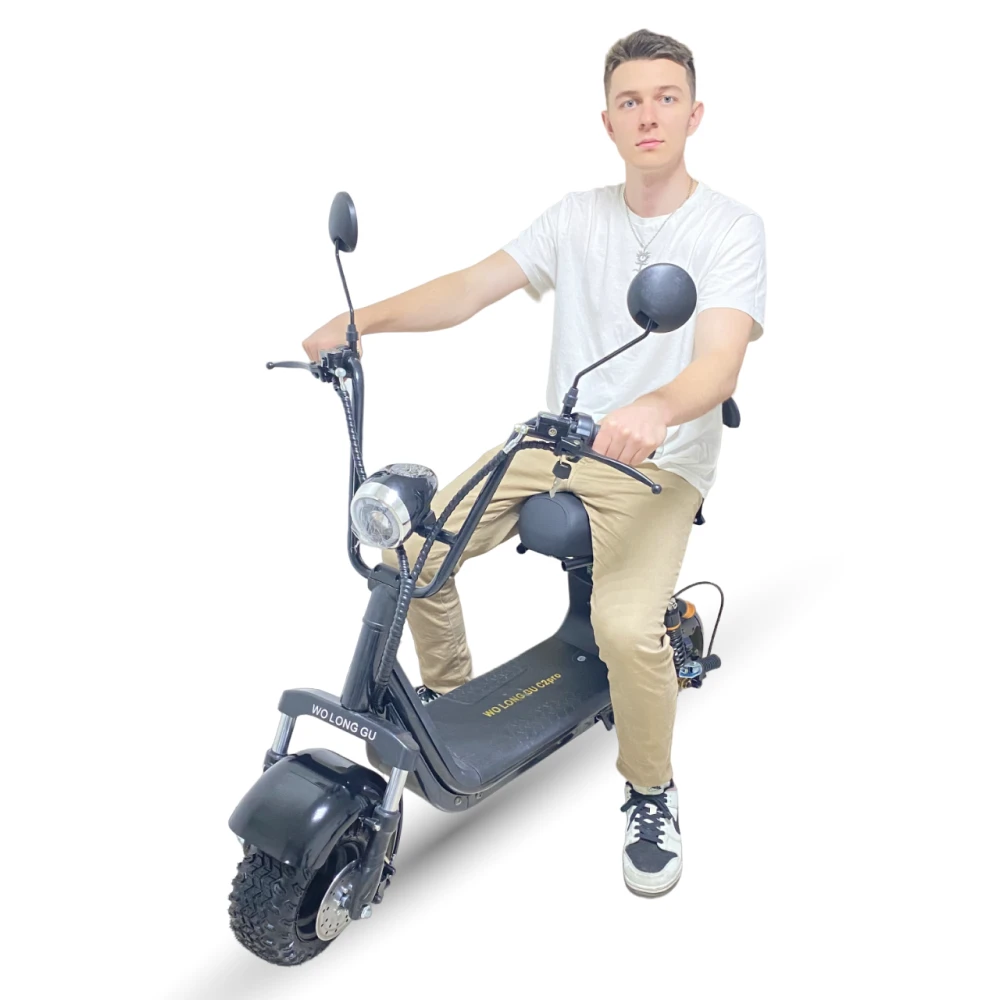 Электроскутер CityCoco WOLONG C2 Pro. Представлена модель в чёрном цвете. Это подходящее средство как для развлечений, так и для поездок на работу. Дальность хода такого аппарата составляет порядка 35 км, а время заряда литиевой батареи 6 часов.