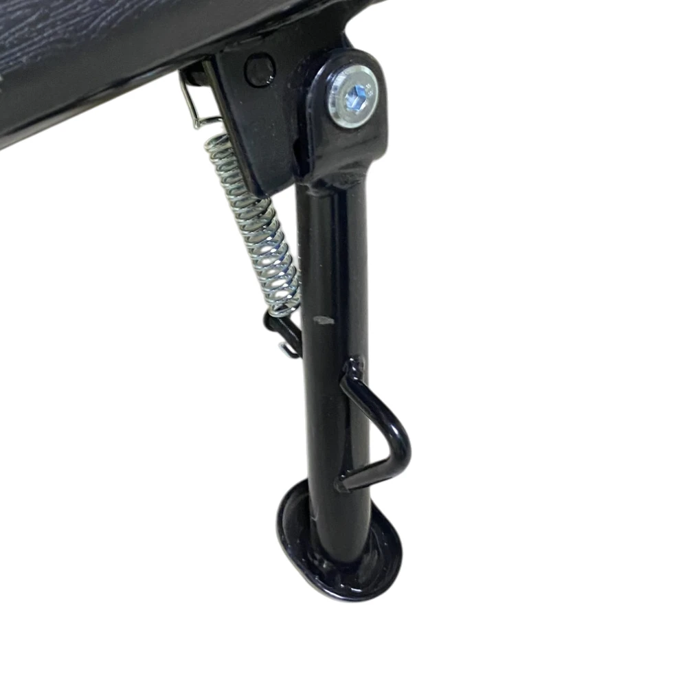 Выдерживает электроскутер нагрузку до 120 килограммов, что позволяет перемещаться по городским улицам, взяв с собой пассажира. Для удобства на уровне заднего колеса расположены две подножки для ног.
