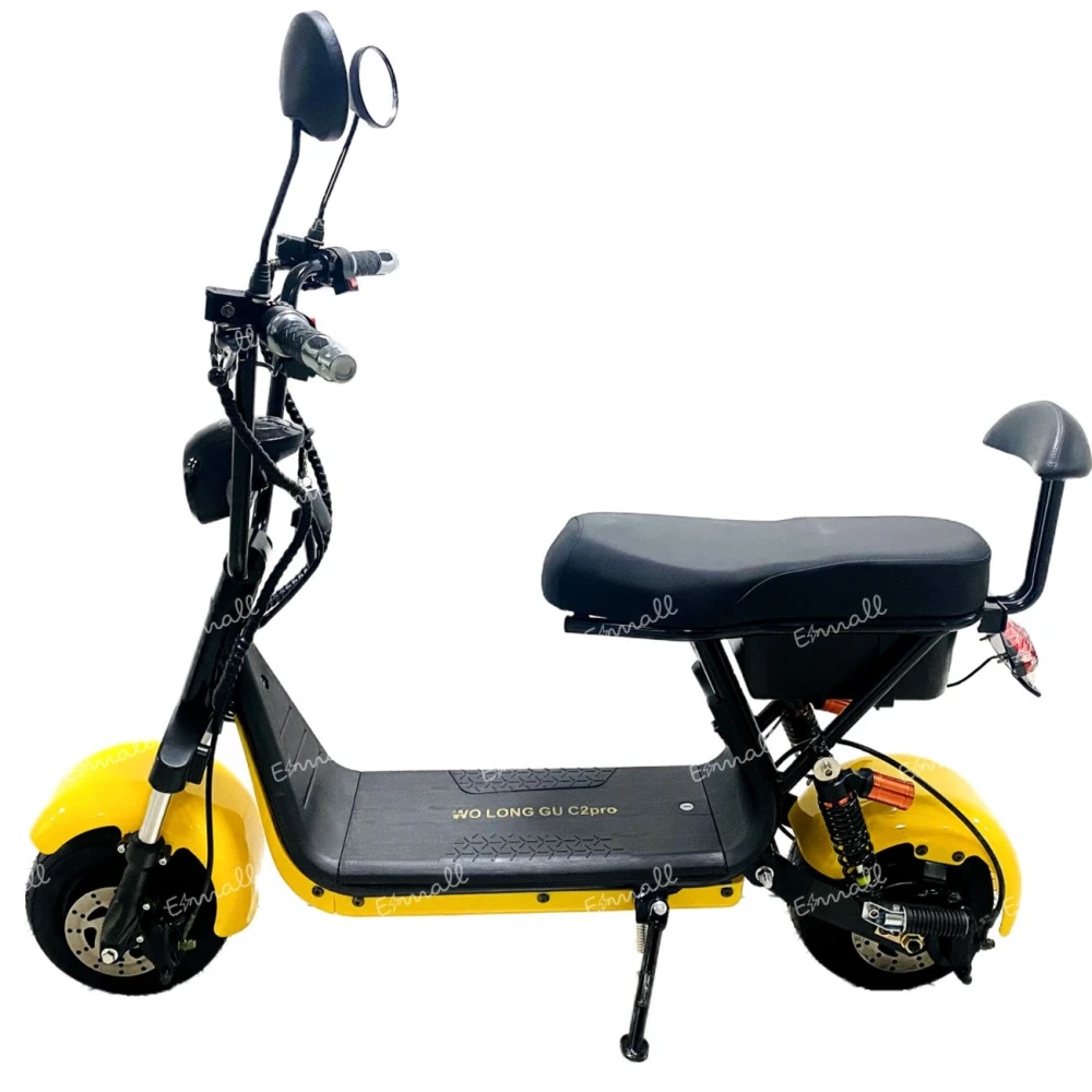 ЭЛЕКТРОСКУТЕР CityCoco WOLONG C2 PRO желтый с дальностью хода до 35 км идеальный вариант техники для активного времяпровождения и вечерних поездок. Компактные эргономичные характеристики отлично смотрятся в сочетании с современным дизайном. Безупречная техническая часть сделала модель востребованной разновозрастной категорией райдеров.