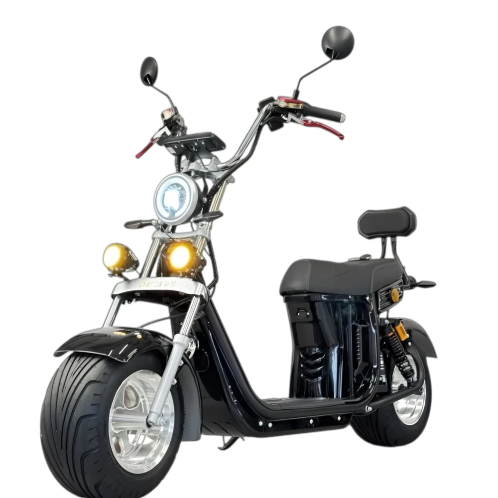 Электроскутер Citycoco GT E30 в черном глянцевом цвете — это универсальное средство передвижения. С мощностью 3000W и задним приводом, он обеспечивает отличную динамику и маневренность на городских улицах. Благодаря двухколесной конструкции и надувным колесам диаметром 18 дюймов, скутер уверенно держится на дороге, что делает его идеальным для поездок по различным покрытиям.Съемный аккумулятор с напряжением 60V позволяет преодолевать расстояние до 50 км на одном заряде, что делает его идеальным вариантом для ежедневных поездок. Время зарядки составляет всего 5 часов, что обеспечивает быструю готовность к новым приключениям. Кроме того, в конструкции предусмотрено дополнительное место под аккумулятор, что увеличивает возможности автономной работы.Скутер весит 75 кг и может выдерживать максимальную нагрузку до 200 кг, что делает его подходящим для различных пользователей. Дисковые гидравлические тормоза обеспечивают надежную остановку, а большое мягкое сиденье и амортизаторы гарантируют комфорт даже при длительных поездках.Дополнительно, Citycoco GT E30 оснащен бортовым компьютером, зеркалами, звуковым сигналом, фарой и поворотниками, что повышает безопасность и удобство. Большая дека под ноги и прочная конструкция делают поездки еще более приятными.Электроскутер Citycoco GT E30 — это идеальное сочетание стиля, мощности и комфорта для тех, кто ценит удобство и скорость в городской среде.