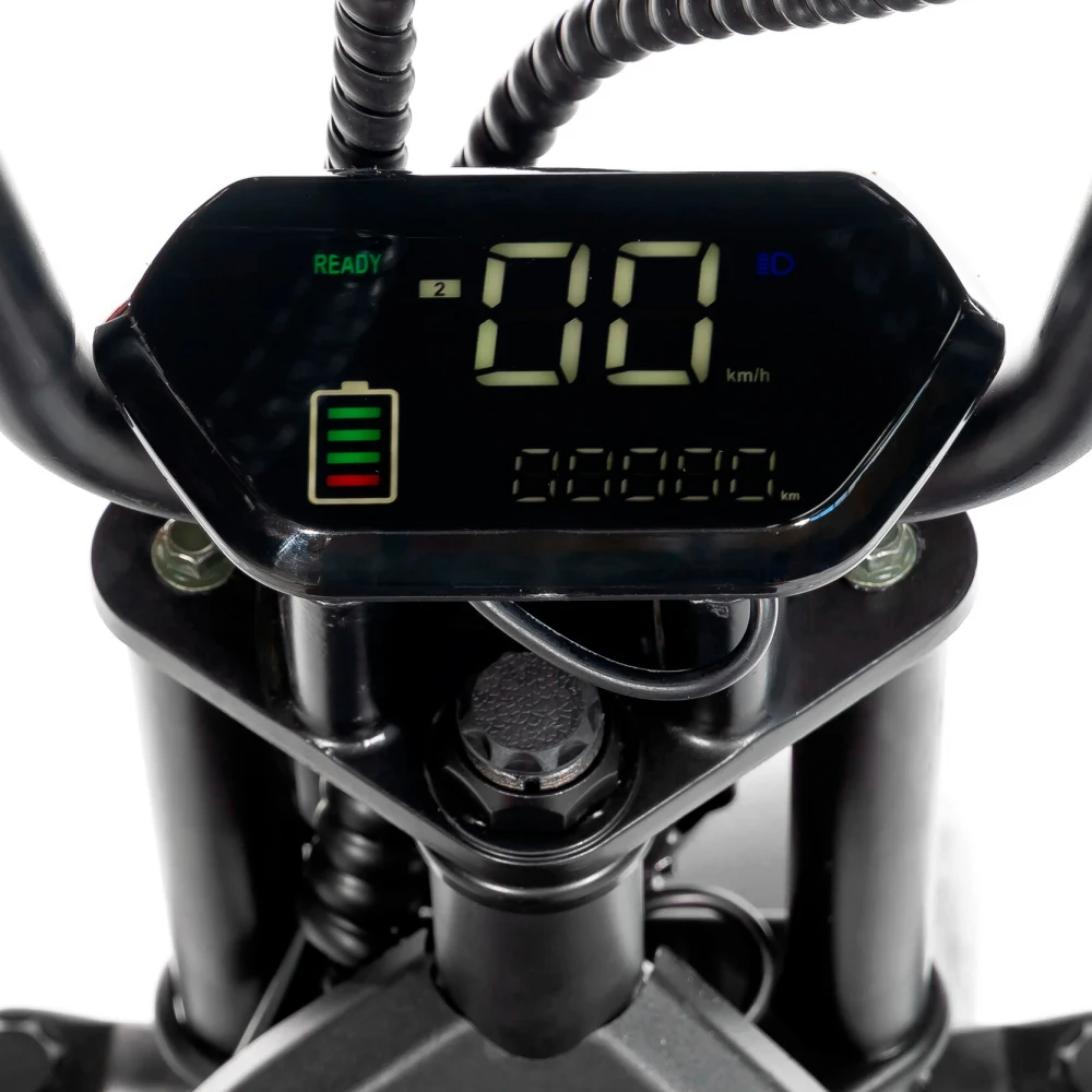 CityCoco GT X5 Trike 1500W 15Ah 48V имеет трехколесную конструкцию и высококачественную карбоновую отделку, которая придает внешнему виду скорости и динамичности. Надежные амортизаторы делают движение более плавным и комфортабельным. Кроме того, CityCoco GT X5 Trike 1500W 15Ah 48V также оснащен передним и задним светом, что добавляет безопасности в ночное время, а гидравлические дисковые тормоза обеспечивают максимальную и мгновенную остановку.