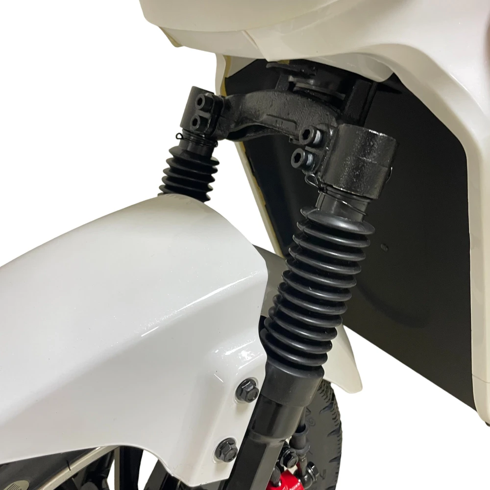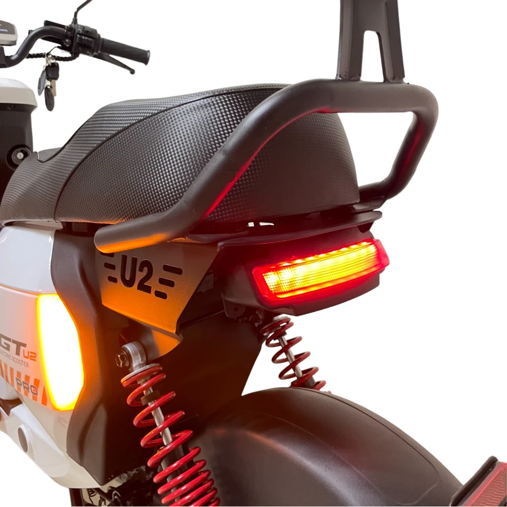 Электроскутер GT U2 PRO в белом цвете — это воплощение стиля и производительности. Двигатель мощностью 1500W и максимальная скорость 70 км/ч делают его идеальным для городских поездок. Запас хода 70 км и аккумулятор емкостью 30Ah гарантируют длительное время катания. Скутер выдерживает до 160 кг, а отдельные подножки для второго пассажира делают совместные поездки комфортными. 16-дюймовые колеса и гидравлические дисковые тормоза обеспечивают безопасность и стабильность. Подвеска на обеих осях сглаживает неровности, а мощная фара освещает дорогу. Современный и стильный дизайн делает этот скутер отличным выбором для каждого.