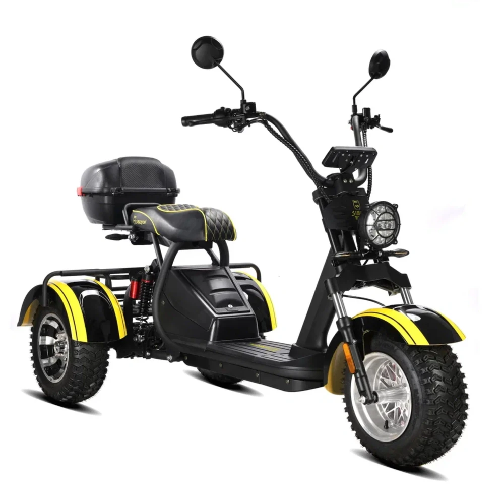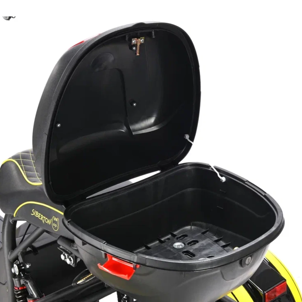 Электроскутер Siberton PRO Trike – это инновационное транспортное средство, сочетающее в себе мощь, практичность и надежную конструкцию, выполненную из высококачественной стали. Благодаря продуманной трехколесной компоновке, данная модель гарантирует стабильность и управляемость даже в условиях городской суеты, а клиренс в 21 см обеспечивает уверенное преодоление неровностей дорожного покрытия.Сердцем устройства является двигатель мощностью 3000 W, который позволяет динамично стартовать и уверенно поддерживать скорость, обеспечивая максимальный пробег до 60 км на одном заряде. Поддерживаемый аккумулятором типа Li-ion с емкостью 21 Ah и рабочим напряжением 60 V, этот скутер быстро восстанавливает заряд за около 7 часов, что делает его идеальным для ежедневного использования.Система безопасности представлена надежными дисковыми гидравлическими тормозами, которые гарантируют своевременное и точное торможение в любых ситуациях. Дополнительное оснащение, включающее поворотники и сигнализацию, повышает видимость на дороге и обеспечивает максимальную защиту водителя.Особое внимание уделено комфорту: спереди используются масляные амортизаторы, а сзади – комбинация масляной системы с пружинной подвеской, что позволяет минимизировать влияние дорожных неровностей на качество поездки. С общей массой 106 кг и компактным размером, электроскутер Siberton PRO Trike удачно сочетает в себе прочность и функциональность, делая его надежным выбором для тех, кто ценит комфорт, мощность и безопасность в одном устройстве.