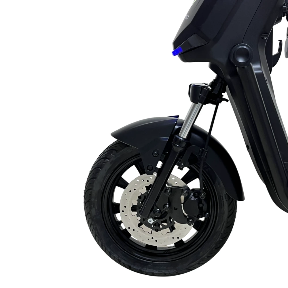 Мощность двигателя 1500 Вт обеспечивает разгон до 60–70 км/ч, справляясь с подъемами до 20° даже при полной нагрузке (150–160 кг), но на неровностях или с пассажиром запас хода падает до 50–70 км. Двухподвесная система (передняя вилка + задние амортизаторы) гасит вибрации на асфальте и гравии; дисковые гидравлические тормоза останавливают за 3–5 м со 50 км/ч; Li-ion аккумулятор 60V 50 Ач с быстрой зарядкой за 8 ч дает реальный пробег 70–100 км в эко-режиме, 50 км в спорте. Три режима езды + задний ход оптимизируют энергоэффективность (эко экономит 20–30% заряда), мотоциклетная ручка газа упрощает контроль; подвеска и задний привод повышают эффективность на 10–15% по сравнению с передним.