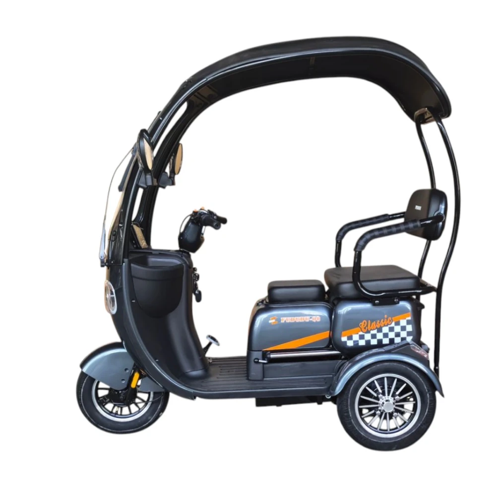 Fududu Q8 — трёхколёсный электротрицикл с задним приводом и мощным мотором 1000 Вт. Занимает уверенное место в сегменте городских трехколесных электросредств благодаря сочетанию практичности, мощности и безопасности.