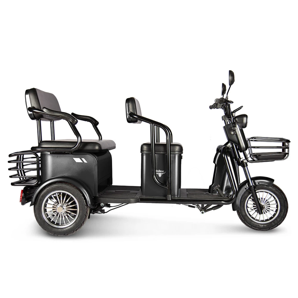 Электротрицикл Rutrike Экипаж – отличная новинка от производителя rutrike. Трициклы экипаж оснащены и адаптированы под эксплуатацию в любых погодных условиях. В новых моделях трицикла rutrike конструкция оснащена стальной рамой, грузоподъемностью до 150кг и весом 110 кг созданы максимальные условия для комфорта и безопасности. Электротрициклы rutrike экипаж востребованы на отечественном рынке и райдерами из СНГ. Купить Электротрицикл Rutrike Экипаж выгодно, выбрать хорошую модель без переплат поможет сотрудничество с нашим интернет-магазином. Трицикл оснащен электромотором мощностью 800 Вт, способный с комфортом развить скорость до 25 км/ч и преодолеть расстояние до 30 км. Модели экипаж пассажирского тс считаются одними из самых удобных и комфортных. Электротрициклы rutrike обладают анатомическими мягкими сиденьями в 2 ряда. Изучить более подробно характеристики новых моделей от производителя rutrike, получить бесплатную консультацию поможет наш интернет-магазин.