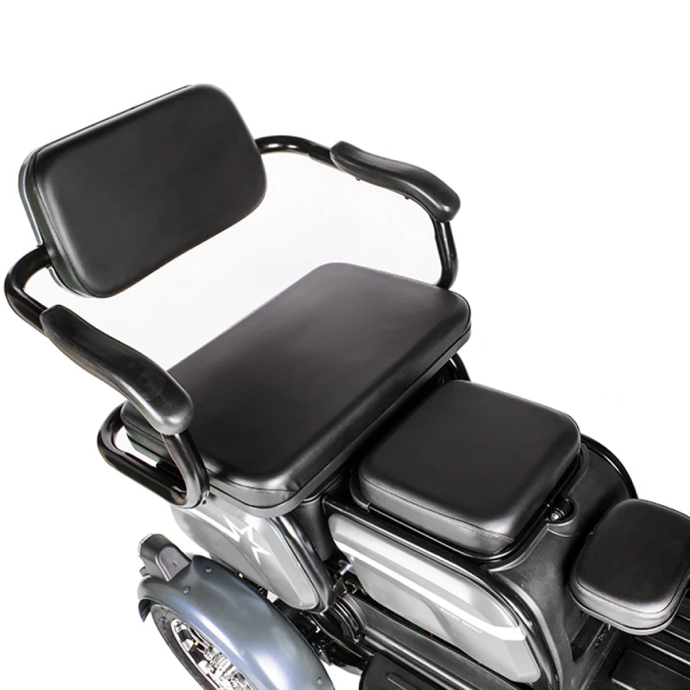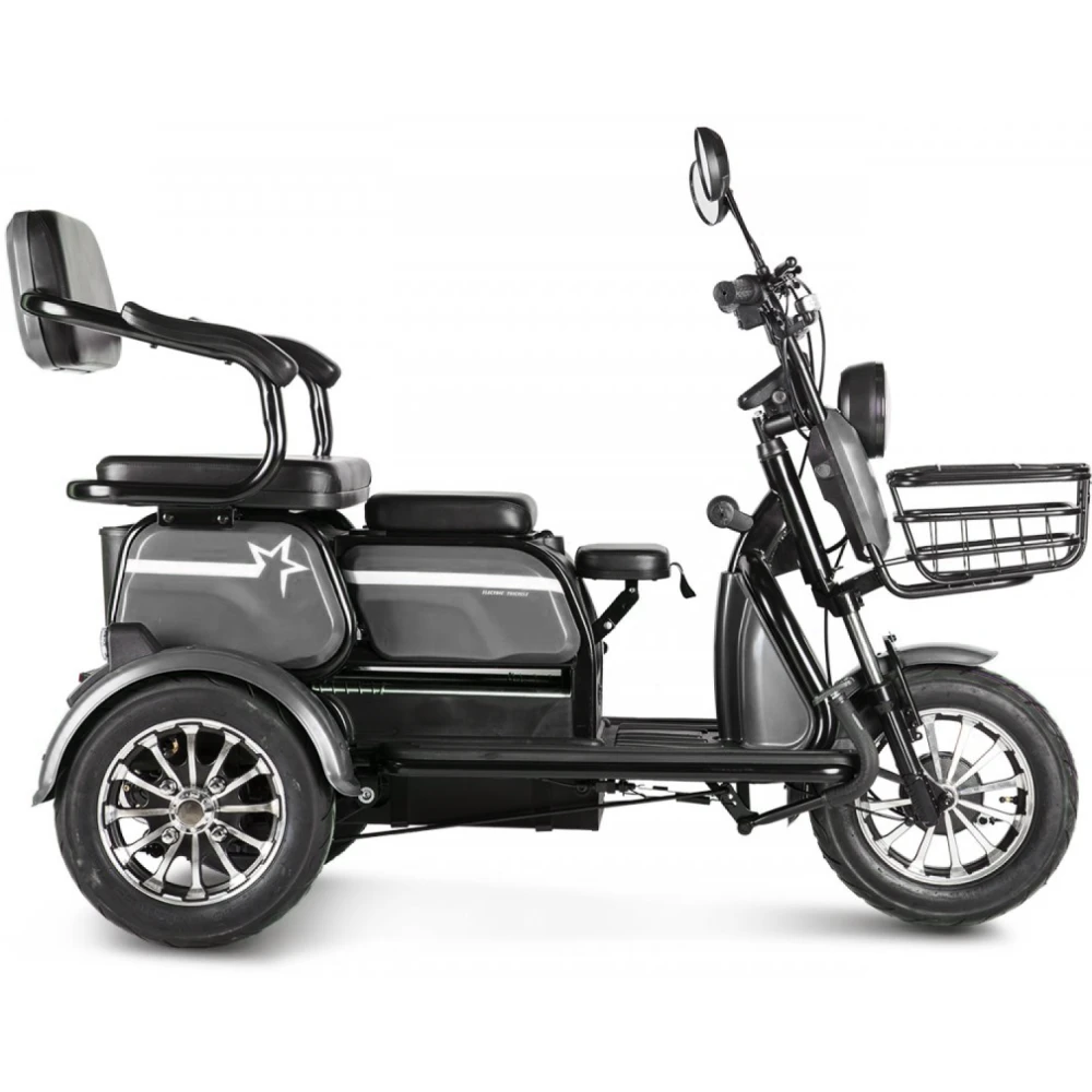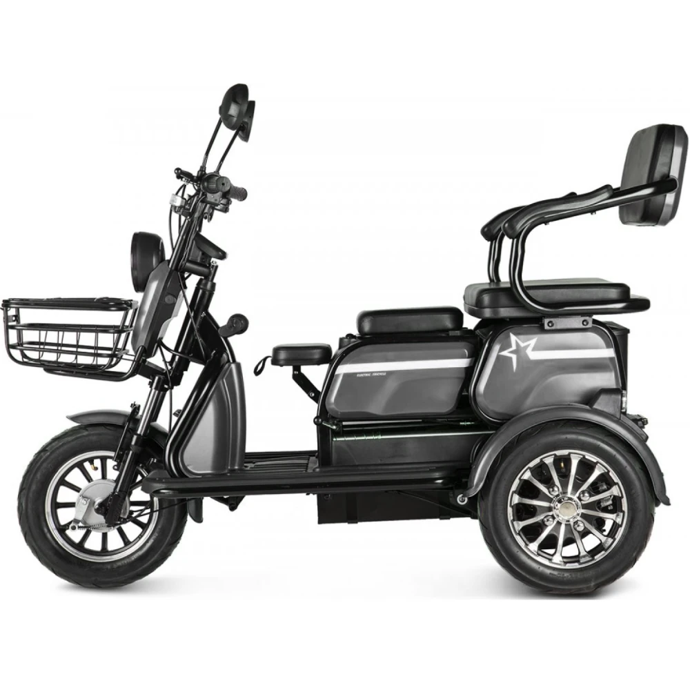 Электротрицикл Rutrike Пилот черный – новинка сезона 2022. Техника для настоящих мужчин. Крутая, практичная и удобная, лидер продаж этого сезона. Создана для райдеров, которые предпочитают активный образ жизни, общение с друзьями на природе и прогулки с близкими друзьями. Для покупки трицикла по разумной стоимости без перекупщиков предлагаем стать покупателями нашего интернет-магазина. Модель комфортная и удобная. Оснащена тремя сиденьями: основным креслом с удобной анатомической спинкой, дополнительным сиденьем и детским. Последнее расположено перед водителем, позволяет держать под контролем ребенка, исключить непредвиденные ситуации в дороге. Кроме частного использования техника доказала эффективность при эксплуатации в туристическом бизнесе. Управление техники происходит по типу трансформера. Водителю необходимо расположиться в кресле посредством легкого нажатия педали, что предоставит доступ к рулевой части и багажнику, где можно хранить необходимые вещи. Мощность электродвижка составляет 650 Вт. Ресус достаточный для мощной тяги. При покупке тс райдеру предлагается 2 варианта АКБ: на 20 и 32 А*ч. От типа аккумулятора будет зависеть дальность езды. Безопасность эксплуатации гарантирована большими устойчивыми колесами. Глубокий протектор легко сцепляется с разными видами поверхности, накатистый. Яркие светодиодные фары и брендовые тормоза предоставляют возможность езды в вечернее время и своевременность торможения. Ждем ваших заказов и звонков.