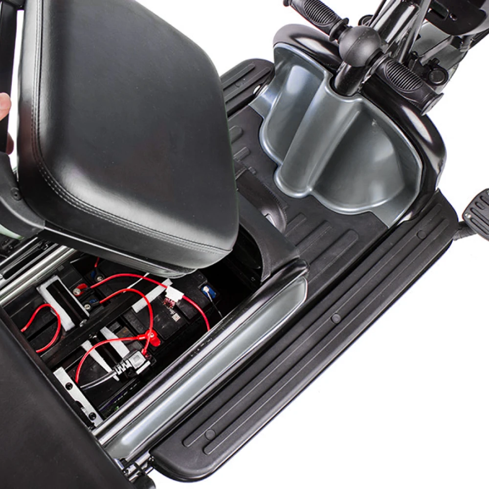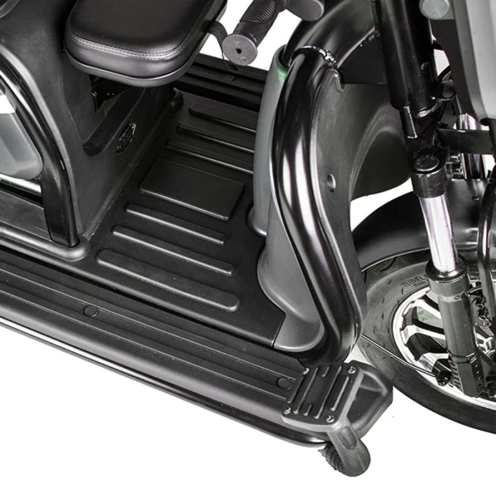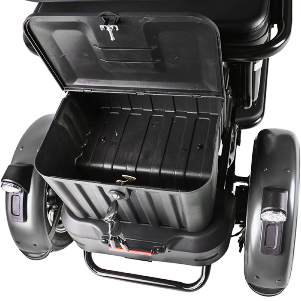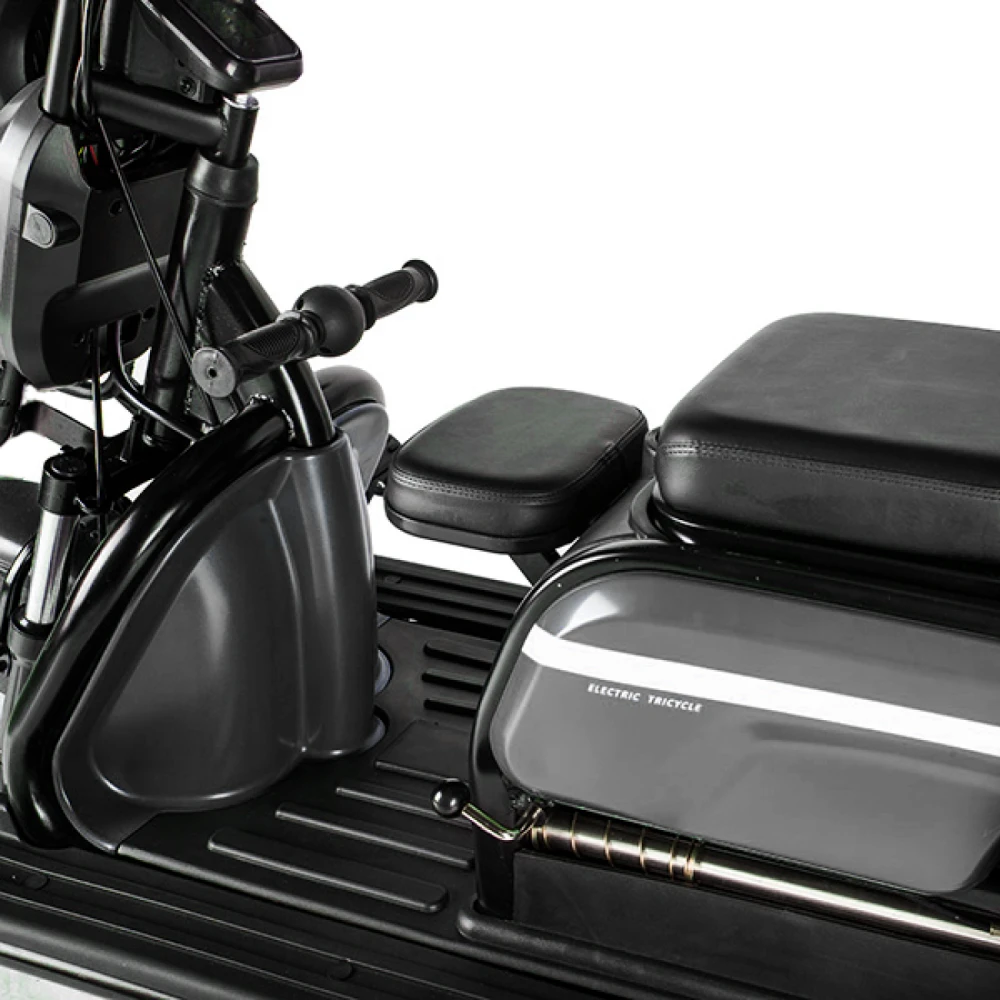 Электротрицикл Rutrike Пилот черный – новинка сезона 2022. Техника для настоящих мужчин. Крутая, практичная и удобная, лидер продаж этого сезона. Создана для райдеров, которые предпочитают активный образ жизни, общение с друзьями на природе и прогулки с близкими друзьями. Для покупки трицикла по разумной стоимости без перекупщиков предлагаем стать покупателями нашего интернет-магазина. Модель комфортная и удобная. Оснащена тремя сиденьями: основным креслом с удобной анатомической спинкой, дополнительным сиденьем и детским. Последнее расположено перед водителем, позволяет держать под контролем ребенка, исключить непредвиденные ситуации в дороге. Кроме частного использования техника доказала эффективность при эксплуатации в туристическом бизнесе. Управление техники происходит по типу трансформера. Водителю необходимо расположиться в кресле посредством легкого нажатия педали, что предоставит доступ к рулевой части и багажнику, где можно хранить необходимые вещи. Мощность электродвижка составляет 650 Вт. Ресус достаточный для мощной тяги. При покупке тс райдеру предлагается 2 варианта АКБ: на 20 и 32 А*ч. От типа аккумулятора будет зависеть дальность езды. Безопасность эксплуатации гарантирована большими устойчивыми колесами. Глубокий протектор легко сцепляется с разными видами поверхности, накатистый. Яркие светодиодные фары и брендовые тормоза предоставляют возможность езды в вечернее время и своевременность торможения. Ждем ваших заказов и звонков.
