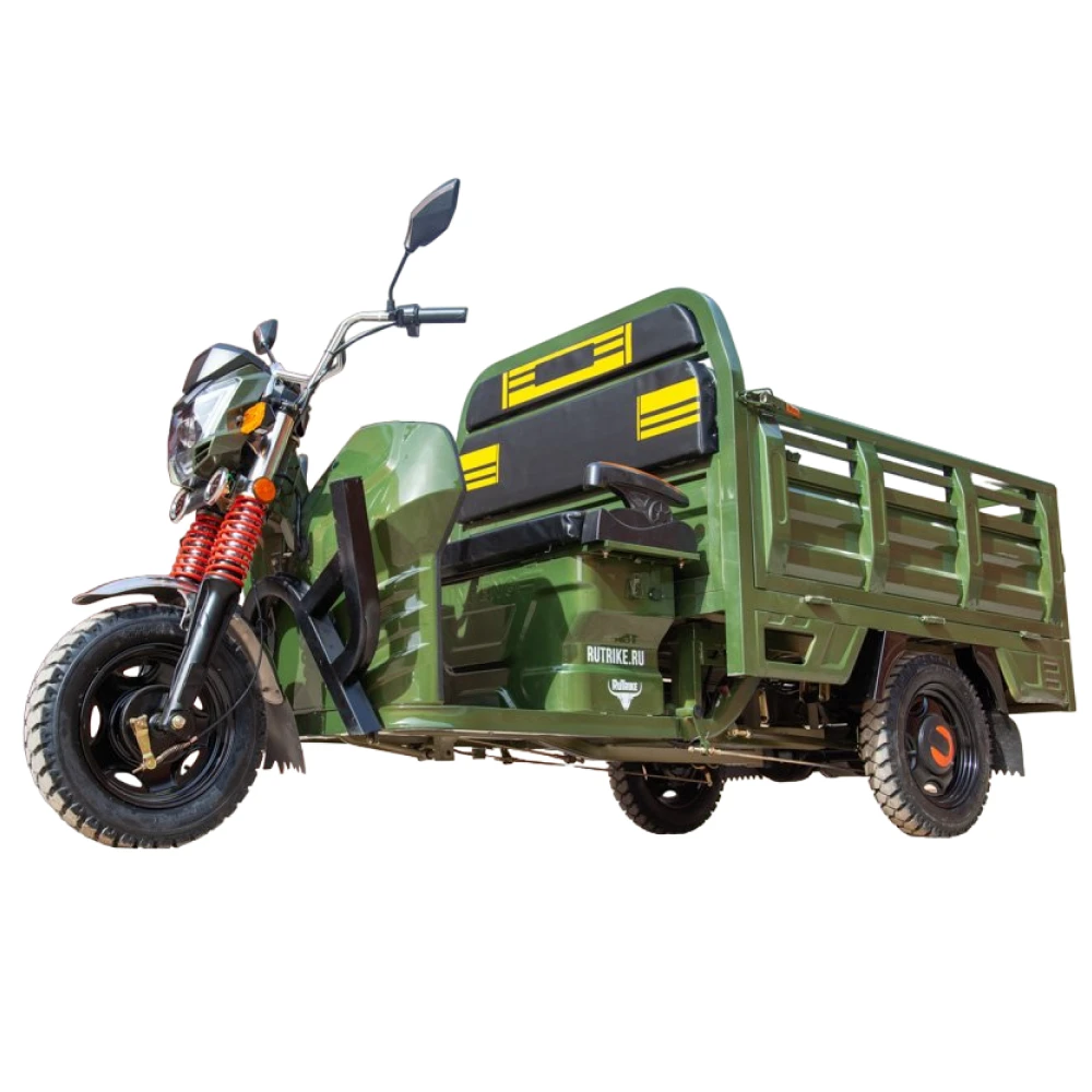 Этот электрический грузовой трицикл имеет заднюю часть с грузовым отсеком, который позволяет перевозить грузы любых размеров и веса с использованием максимальной грузоподъемности. Трицикл rutrike включает в себя барабанный тормоз, который гарантирует безопасность водителя и груза во время транспортировки.
