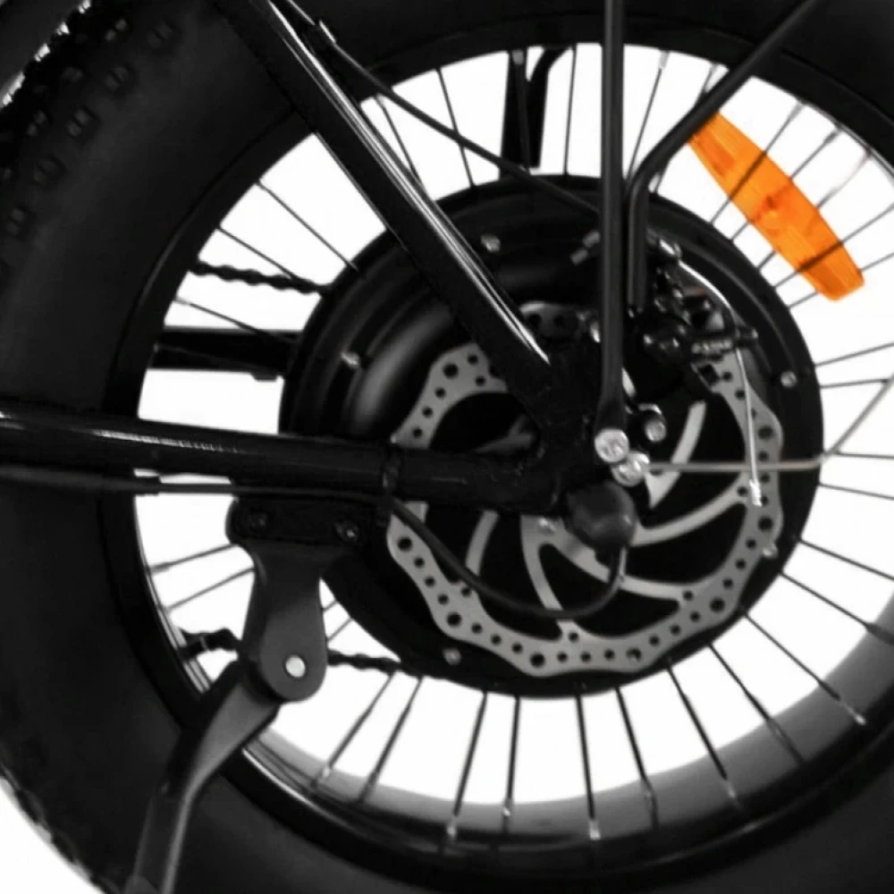 Двигатели изготовлены в соответствии с современными требованиями. Мощность двух моторов в пределах 1000 Вт, позволяет набирать разгон до 47 км/час. Техника также рассчитана на переход в педальный режим для улучшения скоростных характеристик и увеличения расстояния пути. Широкие надувные колеса позволяют легко преодолевать пересеченную местность и дорожные неровности. Модель подойдет для поездок по песку и снегу. Алюминиевая рама прочная и легкая, имеет складную конструкцию для простой транспортировки и хранения. Тормозная система усовершенствованная, состоит из дисковых тормозов.
