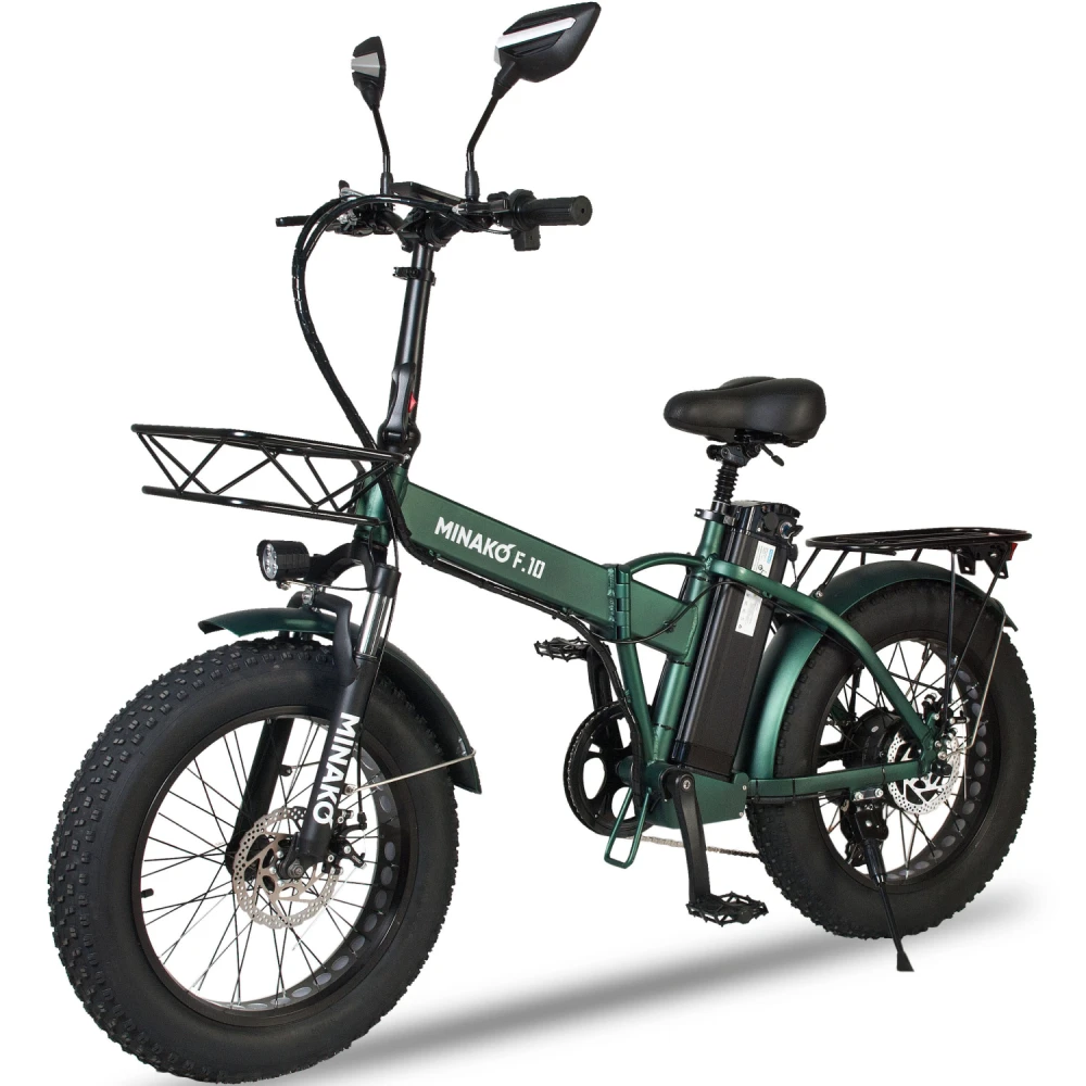 ЭЛЕКТРОВЕЛОСИПЕД MINAKO F10 темно-зеленый – классический вариант складного байка лучшее предложение этого сезона. Компактная эргономичная техника весом 27 кг и грузоподъемностью 120 кг быстро трансформируется до минималистичных размеров, упрощающих процесс транспортировки и хранения.