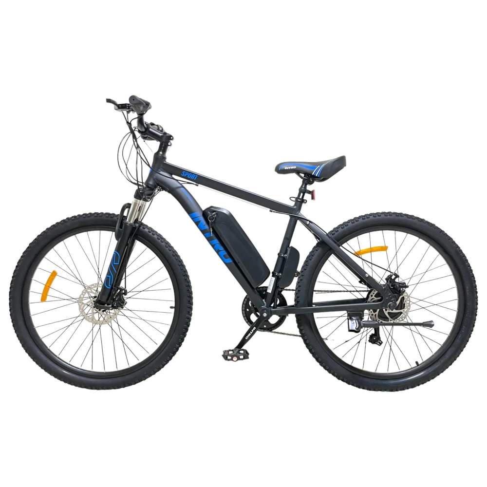Электровелосипед INTRO Sport черно-синий - это уникальное транспортное средство, которое обеспечит вам комфортную и быструю поездку. С его характеристиками вы сможете покорить дальние расстояния без усилий.