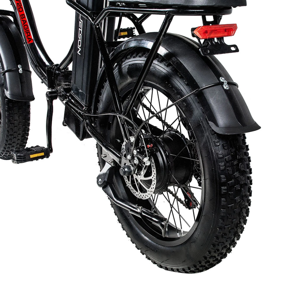 Вес Jetson V20 BAGIRA составляет всего 27 кг, что делает его одним из самых легких электровелосипедов на рынке. Это обеспечивает отличную мобильность и удобство в управлении.