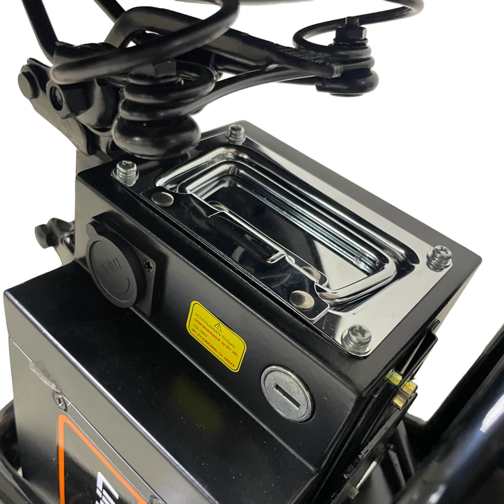 Главное преимущество — аккумулятор 28.6 Ah (60V), обеспечивающий до 80 км на одном заряде. Время зарядки — до 9 часов.