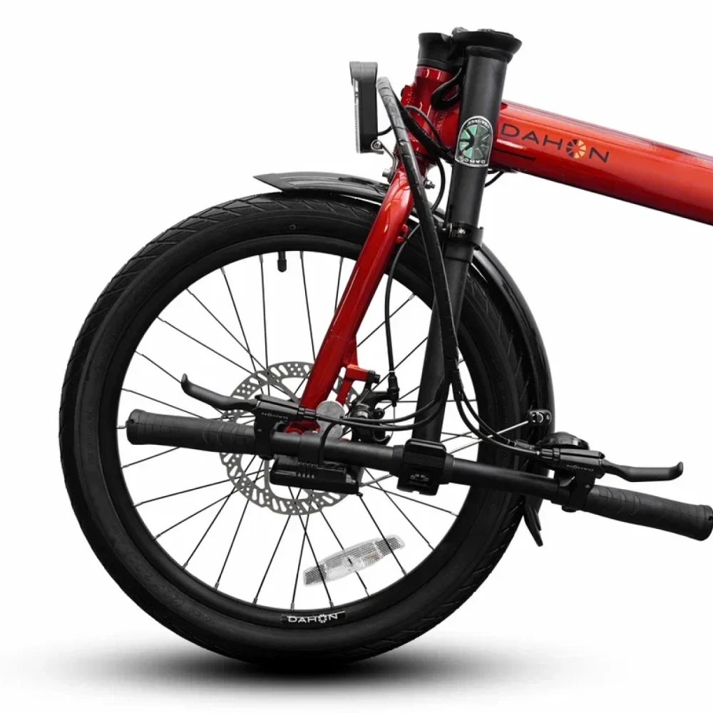 Механические дисковые тормоза TEKTRO обеспечивают эффективное замедление; вилка Dalloy повышает стабильность на неровностях. Соответствует стандартам CE благодаря качественным подшипникам и герметичным втулкам; рекомендации — шлем, огни и соблюдение 25 км/ч. GPS-трекера нет, но приложение DAHON опционально для блокировки; аккумулятор защищен от перегрева BMS-системой с отключением при 60°C.