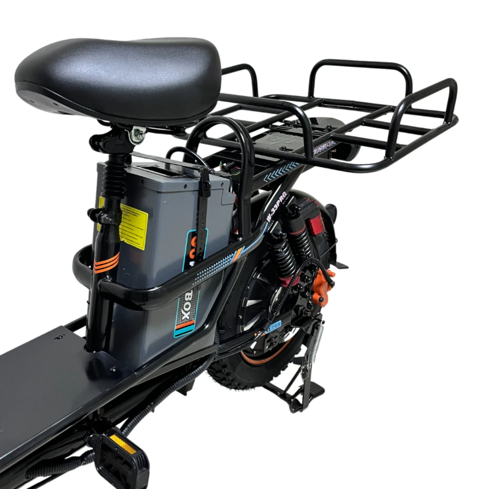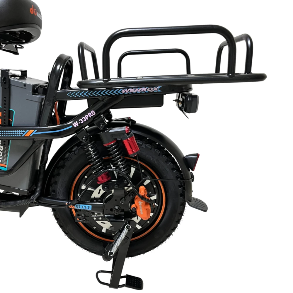 WENBOX W33 PRO отлично подходит для людей с активным образом жизни, нуждающихся в надежном и удобном транспорте для движений по городу, парку или пригородным зонам. Благодаря высокой грузоподъемности и надежной подвеске, этот электровелосипед подходит для перевозки пассажиров и багажа. Модель идеальна для ежедневных поездок и активного образа жизни.
