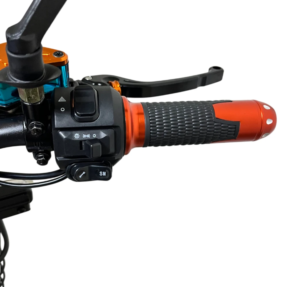 Гидравлические тормоза обеспечивают надежное и эффективное замедление для безопасности при различных условиях движения. Хорошая видимость благодаря фарам и поворотникам, а также зеркала заднего вида обеспечивают высокий уровень безопасности. Амортизация снижает нагрузку на райдера и улучшает контроль на дороге. Дисплей с бортовым компьютером отображает скорость, уровень заряда, режимы работы и другие параметры, что позволяет контролировать состояние велосипеда во время движения.