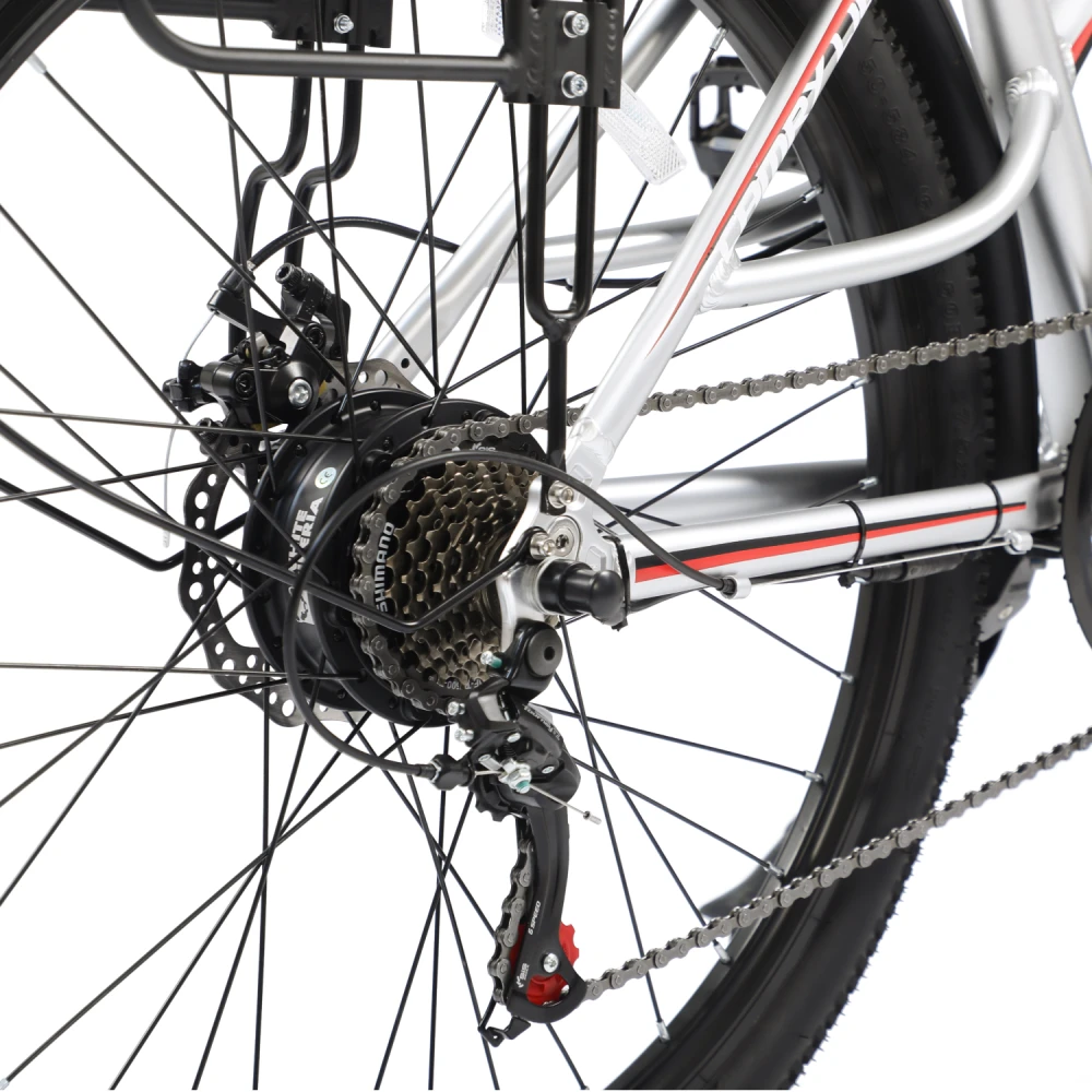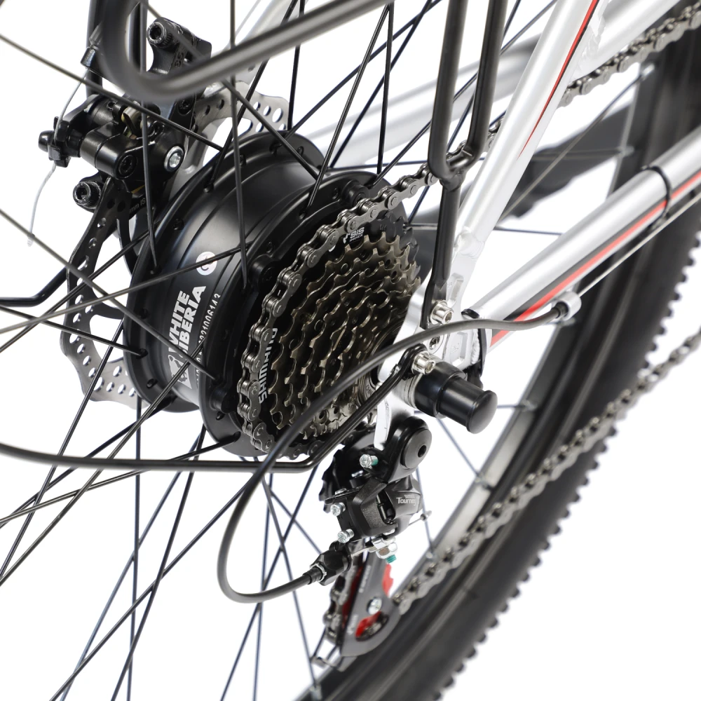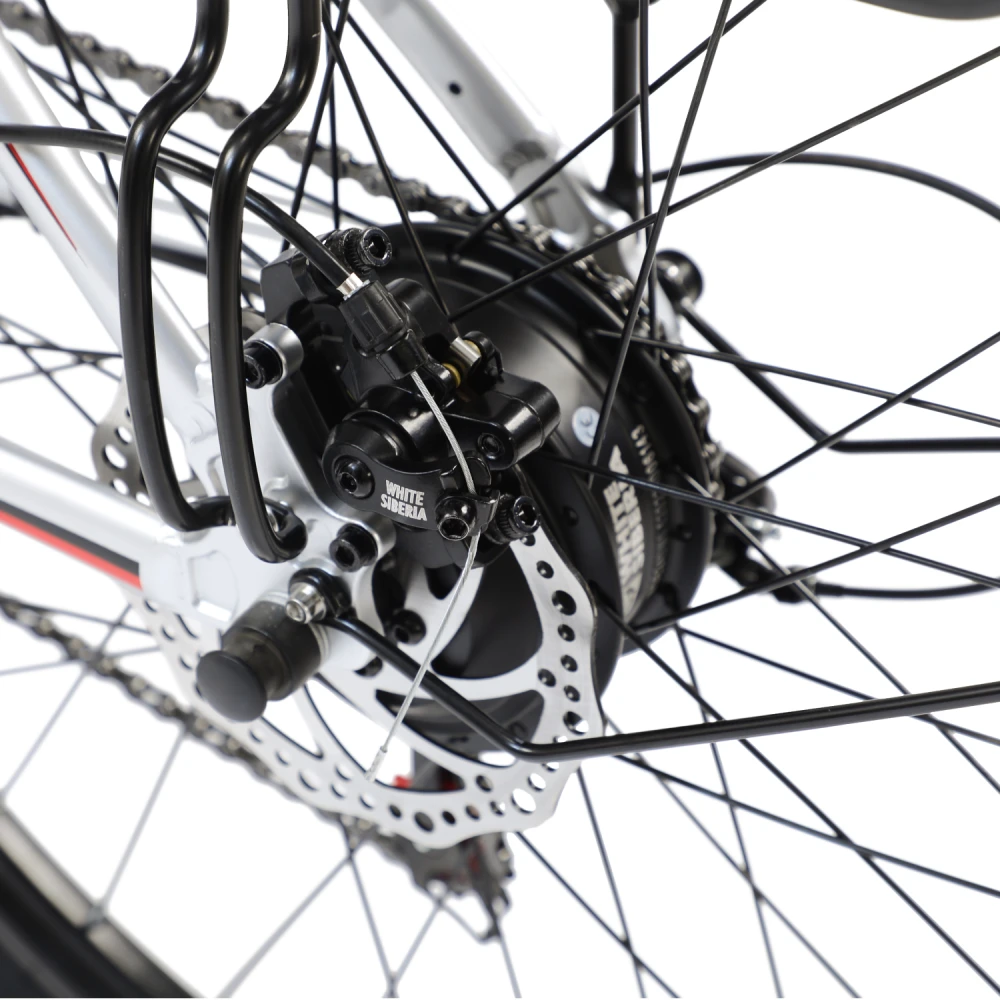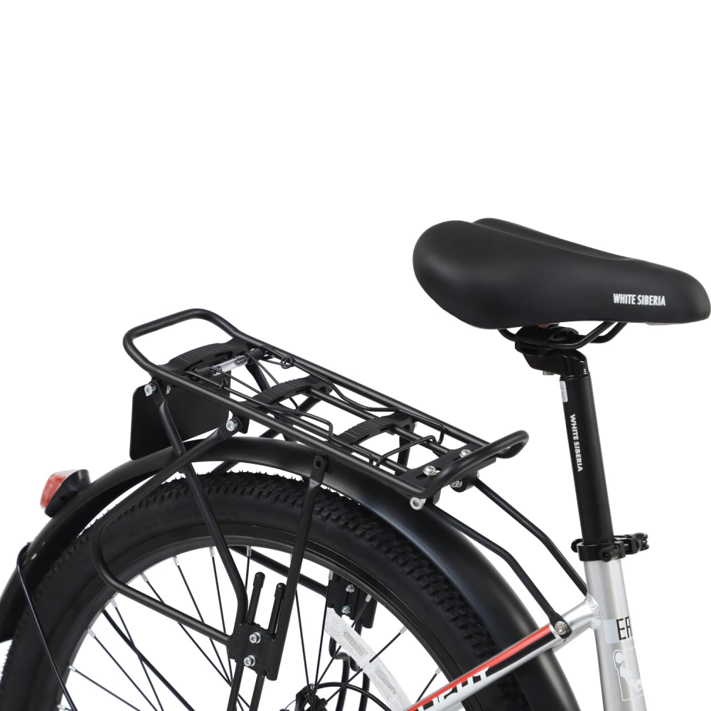Электровелосипед WHITE SIBERIA CAMRY LIGHT 500W в матовом зеленом цвете – мечта каждого активного райдера. Техника весом 23 кг изготовлена из высокопрочного авиаалюминия прочного, надежного и долговечного. Модель считается универсальной, может использоваться в качестве каждодневного вида транспорта и для езды на дальние расстояния, в хорошую и плохую погоду, по ровным дорогам и неровностям. Удобная геометрия рамы не вызывает проблем с посадкой у представительниц слабого пола. Оснащенность тс электромотором на 500 Вт и емкой батареей дает возможность комфортного продолжительного путешествия. Удобное регулируемое седло повторяет анатомические части тела ездока, снижает нагрузку на позвоночник. Информационный компьютер предоставляет полезную для райдера информацию. Колесная часть – качественная и накатистая. 27,5 дюймовые колеса с широкими покрышками, маневренные и скоростные, отлично сцепляются с разными видами грунта. Оснащенность электровелосипеда крыльями увеличивает срок службы техники. Наличие заднего багажника дает возможности перевозки небольших грузов. Для заказа электровелосипеда выгодно предлагаем связаться с нами в телефонном или онлайн-режиме.