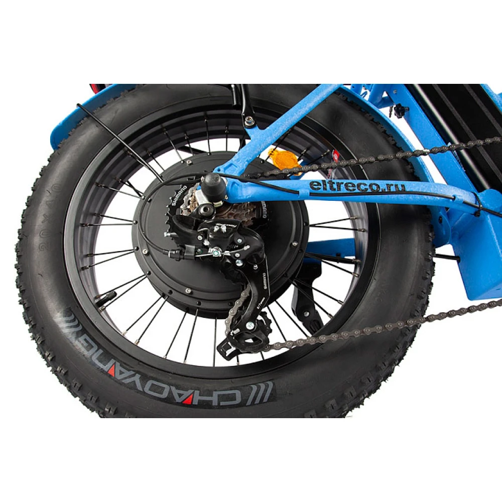 Литий-ионная батарея легко снимается с рамы и полностью заряжается в течение шести часов, после чего велосипед может проехать до 50 километров без подзарядки. Колёса диаметром 20 дюймов и шириной 4 дюйма обладают повышенной проходимостью и легко справляются с ездой по снегу, грязи и даже песку. От брызг райдера защищают металлические крылья на обоих колёсах. Передняя амортизационная вилка поглощает неровности, обеспечивая плавность хода как на городских улицах, так и на загородных трассах.