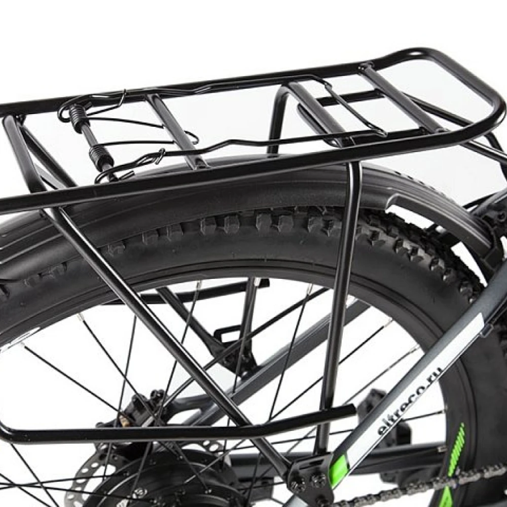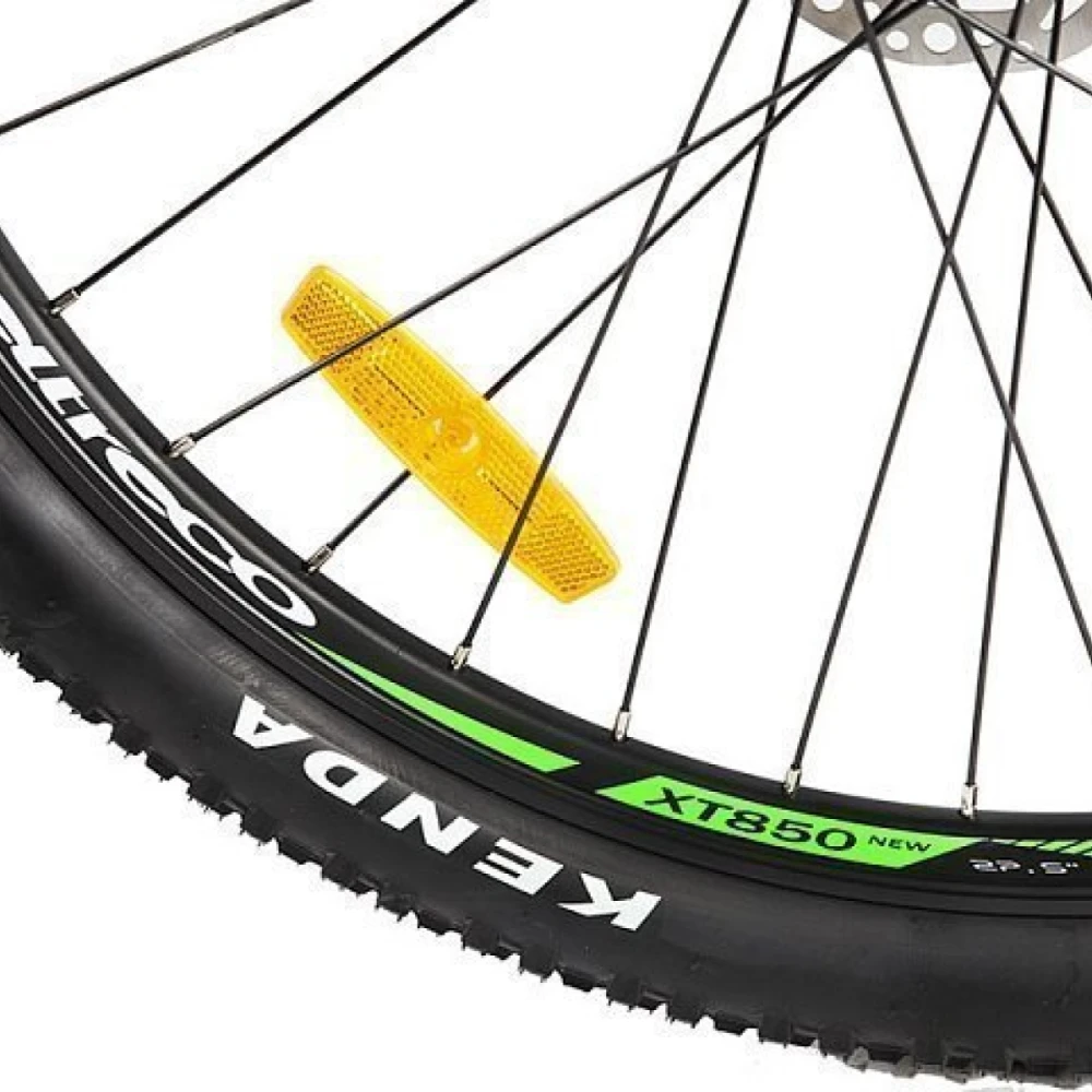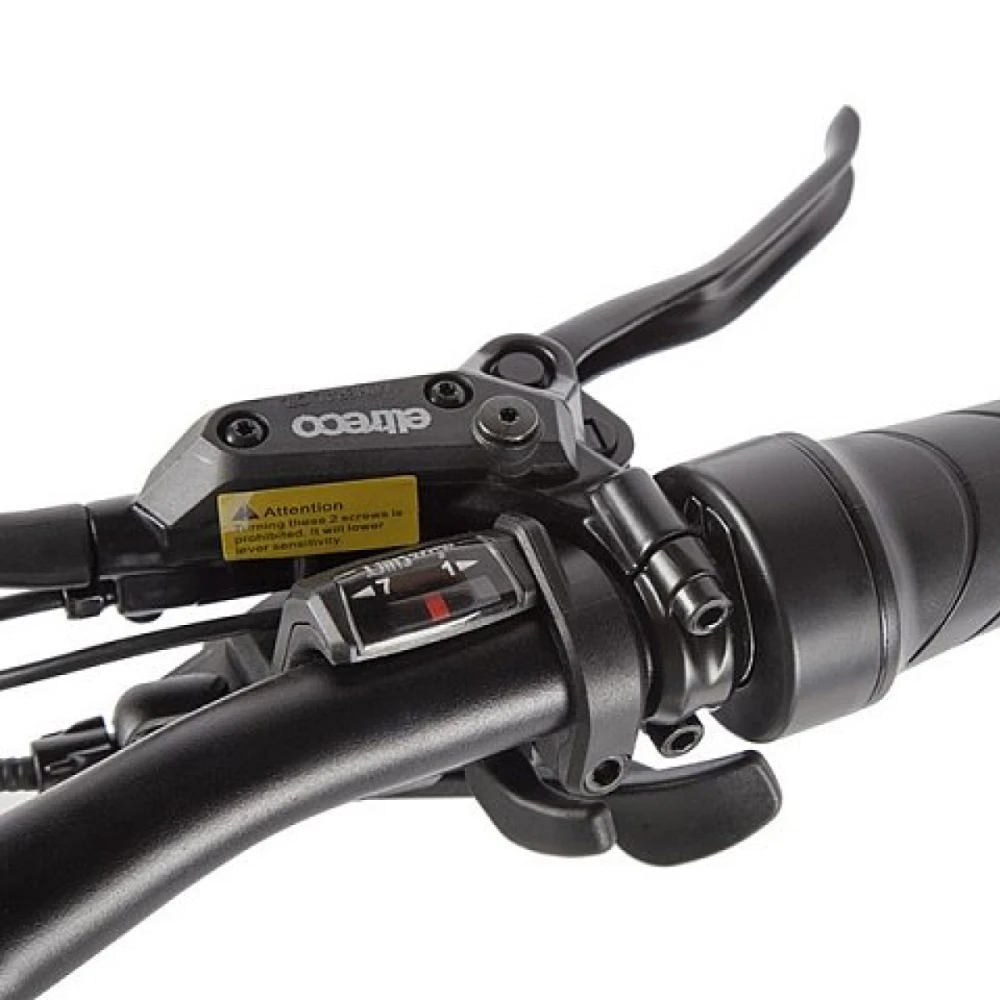 Колеса на Eltreco XT 850 new по размеру 27,5 дюйма. Такой диаметр колеса обеспечивает комфортное движение даже при неровностях и препятствиях. На переднем колесе установлен эксцентрик, поэтому его легко снять с вилки для удобства транспортировки. Имеется амортизирующая подвеска.