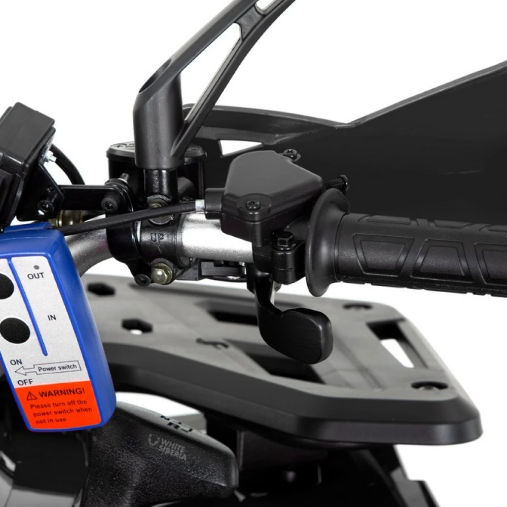 WHITE SIBERIA BARS 200CC PRO оснащен 200-кубовым четырехтактным двигателем мощностью 12 500 Вт (около 17 л.с.) с балансировочным валом, обеспечивающим плавность работы и надежность. Трансмиссия вариаторного типа с передним, нейтральным и задним ходом (F-N-R) упрощает управление и позволяет комфортно передвигаться в самых разных условиях. Модель отличается двухподвесной системой: передняя — 2-х рычажная шаровая, задняя — гидравлический амортизатор с регулировкой жесткости, что обеспечивает плавный ход и устойчивость даже на неровностях. Каркас из стали повышает прочность и долговечность квадроцикла. Среди уникальных решений — подогрев ручек для комфорта в холодное время года и наличие лебедки для самовывоза из трудных мест. Модель получила положительные отзывы за сочетание мощности и плавности хода в своем классе.