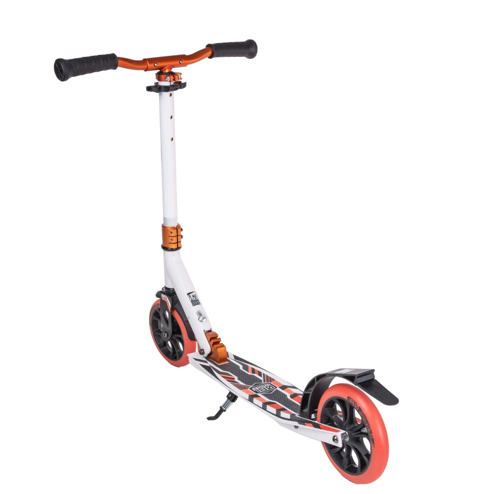 Колесная часть – полиуретановая, накатистая, размером 180 мм, в сочетании с качественными подшипниками Abec 7 гарантирует комфортную езду. Модель оснащена системой складывания Easy Fold, при необходимости может быть минимизирована до желаемых размеров.