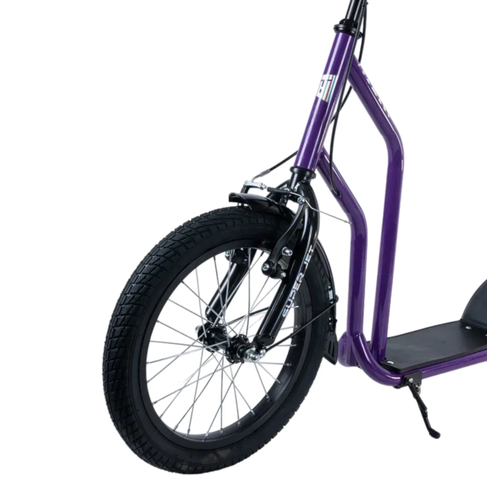 Tech Team Super Jet 700 2024 года в фиолетовом цвете - это стильный и функциональный городской самокат. Его необычный дизайн напоминает велосипед, что делает его выделяющимся среди других моделей. Спереди установлено большое колесо диаметром 406 мм, а сзади - 305 мм, что обеспечивает отличную устойчивость и маневренность. Ободные тормоза и велосипедный руль с двумя ручками тормоза гарантируют надежное управление и безопасность. Максимальная нагрузка до 100 кг и легкая алюминиевая рама весом 8,1 кг делают этот самокат идеальным выбором для ежедневных поездок по городу.