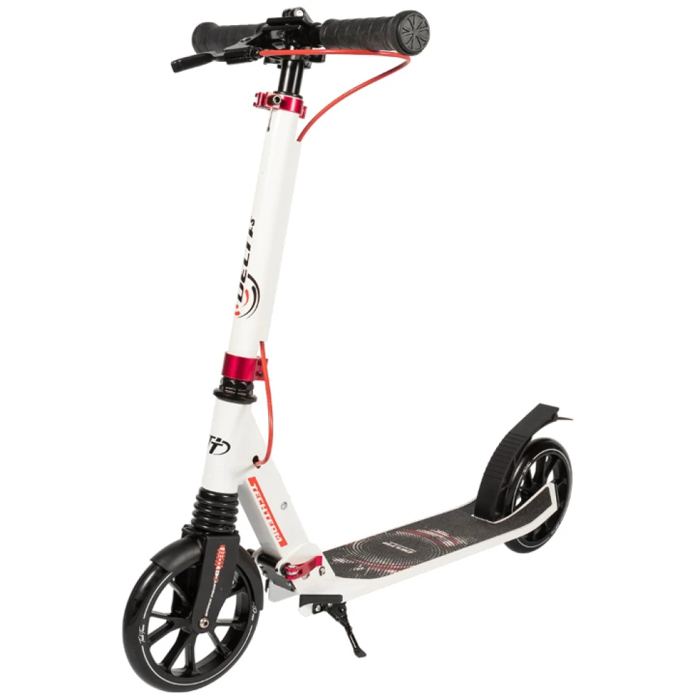 Относительно детей самокат привлекает современным дизайном, высоким уровнем комфорта, подножкой и системой складывания. На этапе изготовления производитель сделал возможное, чтобы с управлением, парковкой и системой складывания ребенок справлялся самостоятельно.
