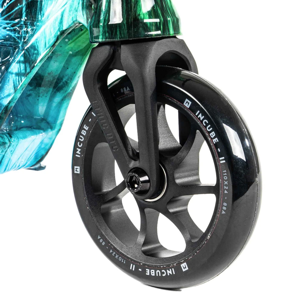Этот самокат — настоящая находка для тех, кто стремится подчеркнуть свою индивидуальность и выделиться из толпы. Уникальная цветовая гамма «синий иридиум» создает эффект плавного перехода от синего к изумрудному, что делает каждый элемент дизайна по-настоящему волшебным. Вес модели составляет всего 2.79 кг, обеспечивая легкость и маневренность, необходимые для выполнения сложных трюков.