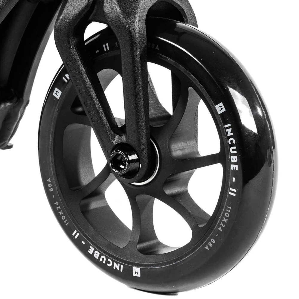 Этот самокат весит всего 2.79 кг, что делает его невероятно легким и маневренным, позволяя райдерам выполнять сложные трюки с легкостью. Колеса диаметром 110 мм и подшипники класса ABEC 9 обеспечивают плавное и стабильное движение, что особенно важно для экстремальных видов спорта. Высота руля составляет 570 мм, что идеально подходит для райдеров ростом от 130 до 150 см, обеспечивая комфорт и контроль.