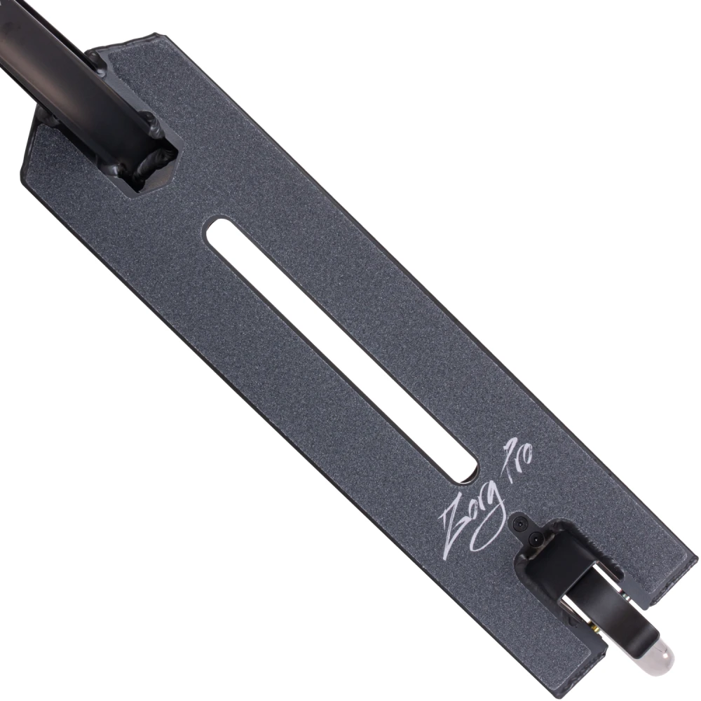 Трюковой самокат tech team zorg pro 2023 серый предназначен для пользователей с опытом с ростовыми параметрами 170-190см. При весе 4,35 кг модель рассчитана на максимальную нагрузку до 100 кг. Перед приобретением тс производитель рекомендует обратить внимание на техническую часть и преимущественные характеристики. Хромированный руль с внешним диаметром 34.9 мм оснащен прорезиненными грипсами, увеличивающий хват, важный при выполнении опасных прыжков. Устойчивая прорезиненная платформа размерами по ШхД – 140х560 мм изготовлена из инновационного сплава AL 7003 Т6, имеет облегчающую фрезеровку. Такие параметры полностью исключают случайное соскальзывание стоп. 115 мм колесная часть с алюминиевыми дисками и продвинутыми подшипниками ABEC 9 обещает отличный разгон, жизненно необходимый для каждого райдера. Технические параметры считаются лучшими в своей линейке. Увеличивают шансы на лидерство, позволяют совершенствовать трюки разной сложности, быть на шаг впереди соперников. Купить самокат по разумной цене быстро, без переплат предлагает наш интернет-магазин. Телефонный звонок менеджеру ускорит процесс оформления заказа.
