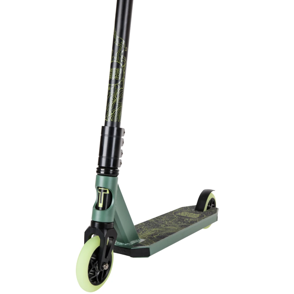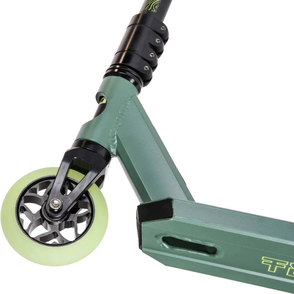 Производитель гарантирует надежность сборки, используя только фирменные детали. Повышенная комфортность техники обеспечивается благодаря удобной рулевой части. Резиновые накладки на руль самоката надежно закреплены. Имеют анатомически правильную форму, не скользят под руками. Трюковой самокат весом 3,75 кг позволит ощутить легкость передвижения и исполнения трюков. Приемлемая цена делает модель доступной для начинающих райдеров. Абсолютная безопасность самоката обеспечивается благодаря качественным задним ножным тормозам. Колеса диаметром 110 мм из прочного полиуретана позволяют прочно сцепляться с любой дорожной поверхностью.