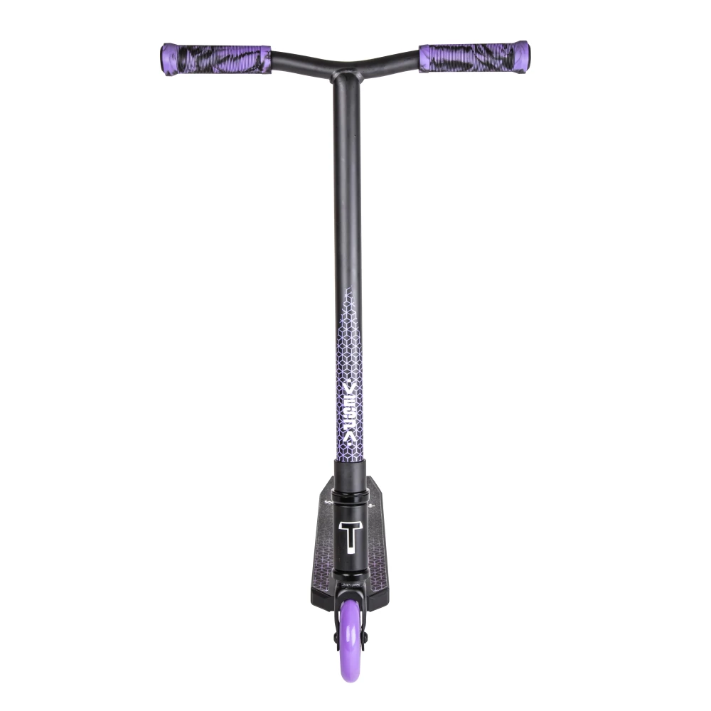 Небольшие размеры деки и рулевой части сделали технику удобной, компактной для начинающих райдеров. Покрытая нескользящей шкуркой дека увеличивает степень безопасности. Ширина допускает одновременное размещение стоп. Прорезиненные грипсы исключают соскальзывание рукути. 100 мм колеса из полиуретана накатистые и скоростные, рассчитаны на жесткую эксплуатацию. Своевременность торможения гарантирована задним тормозом.