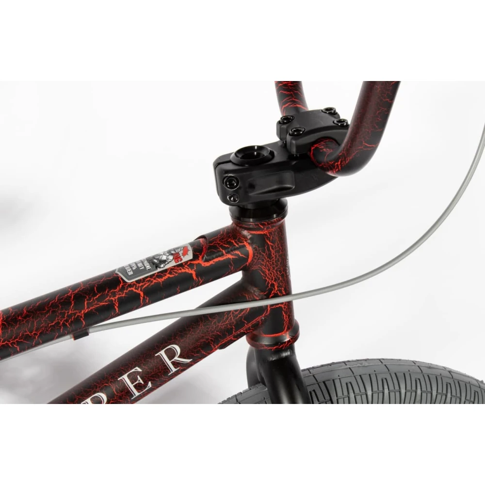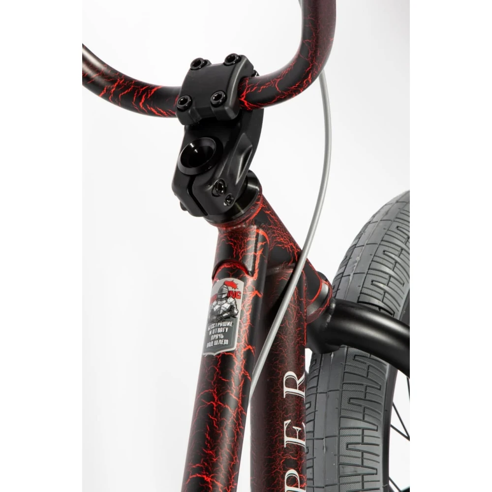 Колеса изготовлены из алюминиевого обода, надежные, прочные, рассчитаны на скоростную езду в проблематичной местности и условиях. Рулевая часть интегрированная, в сочетании с алюминиевыми педалями и максимальным выносом обеспечивает гладкость и надежность движения.