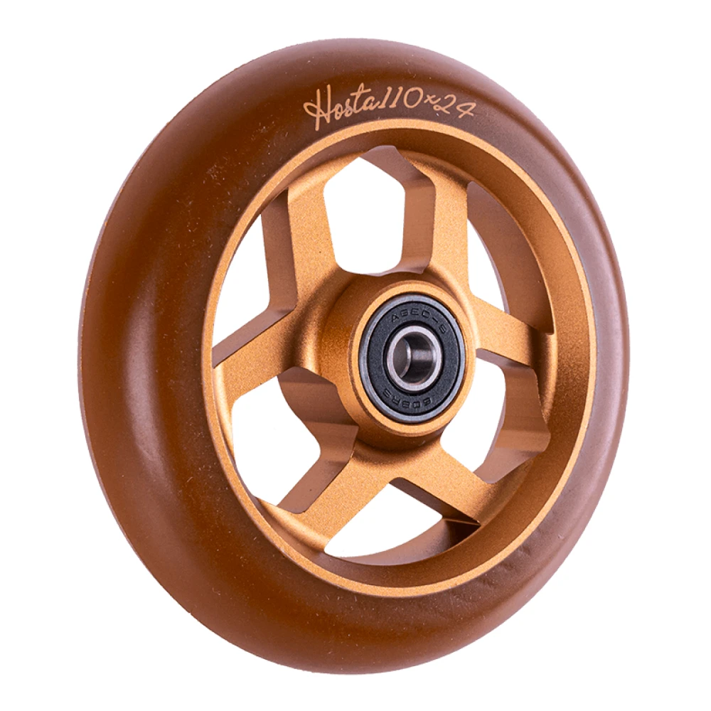Колесо для трюкового самоката Tech Team 110*24мм Hosta в коричневатом оттенке выглядит необычно, понравилось трюкачам из РФ и СНГ. Лучшее предложение этого года. Качество материала изготовления позволяет выполнять рискованные трюки без переживаний за деформацию. Надежный алюминиевый диск с полиуретановым покрытием и инновационными подшипниками гарантируют отличный разгон и накат. С такими параметрами райдер может рассчитывать на лидерство, высококачественные суперпрыжки. Купить колеса по разумной цене, воспользоваться услугами профессиональной консультации поможет сотрудничество с нашим интернет-магазином.